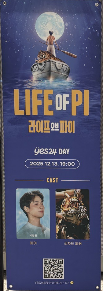 [일기형] 오전엔 물랑루즈 오후엔 라이프 오브 파이 하루 뮤지컬 데이로 풀로 즐기고 오기~ 성공👍🏻 파이_박정민 리차드 파커_호랑이 예스24데이라 가격도 할인에 파우치도 받고😍 너무 재밌게 보고옴👍🏻 워낙 유명한 작품이라 내용을 알고 가는 분들도 많겠지만 사실 나는 아무것도 모르고 뮤지컬로 처음봤는데 오히려 더 좋았다~! 그래도 이미 내용을 알아도 다시 보고 싶은 작품이다👍🏻 박정민님의 연기도 훌륭하고 다음엔 박강현님꺼로도 보고싶다~ 나는 무대가 가까워서 배우들 연기를 오글없이도 잘보이고 리차드 파커 호랑이 역할과 그외 동물들을 연기하시는 많은 분들이 실감나는 모션을 하기위해 얼마나 땀흘리며 하시는지도 볼수있어서 좋았다. 보고 나서 느낀건 너무 가까이보다는... 전체 무대가 보인는 2~3층이 더 좋을듯 하다. 극의 특성상 오래 하기는 힘드실듯~ 140분의 극이라 밤공 후에 좀더 편히 집에 갈수있다. 끝나면 바로바로 집가에 감... 막차땜에 급해짐🤣ㅎ 무튼 강추👍🏻
