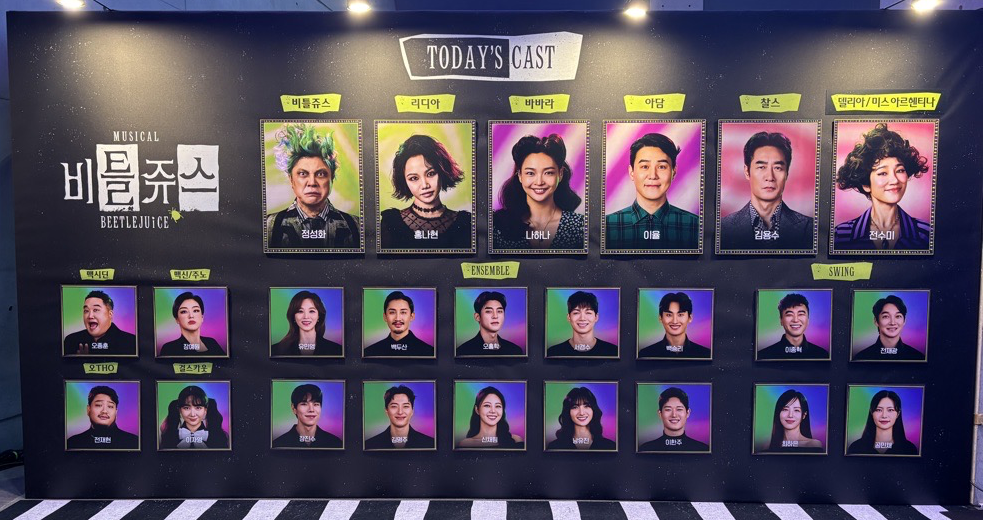 [일기형] 비틀쥬스! 비틀쥬스! 비틀쥬스!? 세번 외치면!?ㅋㅋㅋ 올해 가장 보고싶던 뮤지컬중 하나라... 기다리고 기다리다 로터리티켓 할인 당첨! 성공으로 드디어 보고왔드아!! 사실 다른 뮤지컬 예매했던거 있었는데... 다른 날짜로 바꾸고(취소수수료ㅠㅠ엉엉) 그래도 렌덤 뽑기만 잘하면 로터리 티켓(5만원)은 내 기준 최고 할인이기에👍🏻ㅎㅎ 허나.. 뽑기는 쏘쏘했다...😂 15만원짜리 R석 2층 4번째줄 사이드 중간 당첨! 1층이길 바랬지만 무대는 전체적으로 잘보여 잘 보곤옴(낫배드) 혹시몰라 챙긴 오페라글라스로 표정연기 단독넘버일때는 봤는데 그냥 전체 무대와 뿅뿅 신기한 재미들이 있어서 그냥 배우 개인 팬이라 한명만 쫓아 표정연기 볼거아님 전체로 보는게 더 좋을 듯👍🏻 일기형 기록이라 스포없고 리뷰는 내 느낀 점 위주지만 안보신분들은 꼭 한번는 봐보시길😍 평는 호불호 갈릴수도 있지만 나는 극호❤️ 정성화 배우님으로 봤는데 재간둥이심👍🏻 홍나현 배우 첨봤는데 완전 찰떡👍🏻약간... 금쪽이 인데ㅋ 정성화 배우가 더 개큰 금쪽이라ㅋㅋㅋ 특히 1부가 100프로 재밌어서 난리났다가 2부는 조금 80프고 재밌어서 조금 진정ㅋ 추천 별점 4.5인 이유🤣 무튼 난 너무 재밌었다ㅋㅋㅋ 끝! 급 하루 두탕뜀(밤공)