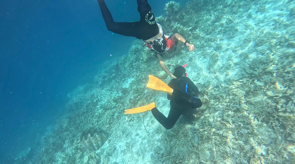在干貝城體驗一把潛下去海底摸硨磲貝,結果還是被壓進海底了_(:3 」∠ )_