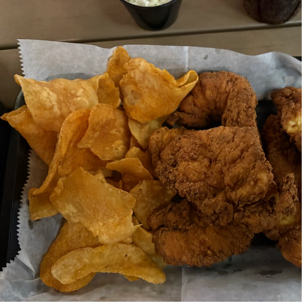 Very good! Chicken wasn’t dry and tasted great with ketchup. It came with hush puppies and coleslaw (not pictured) but I don’t like those so I gave them to my parents lol also came with homemade chips, had a couple but didn’t eat them all.