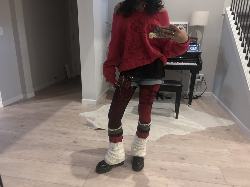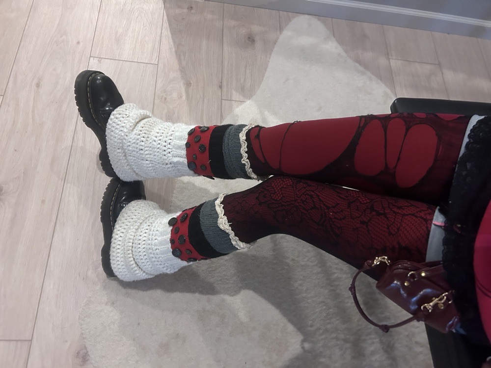 wore 2 different tights over my red tights today ! also its a good hair day today too