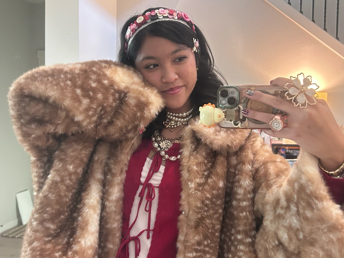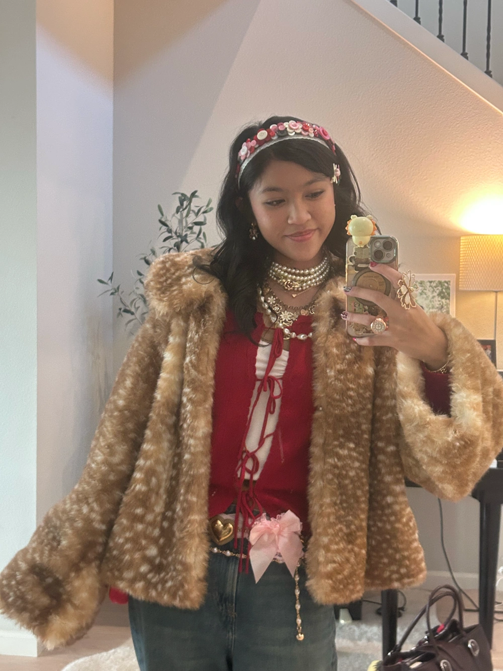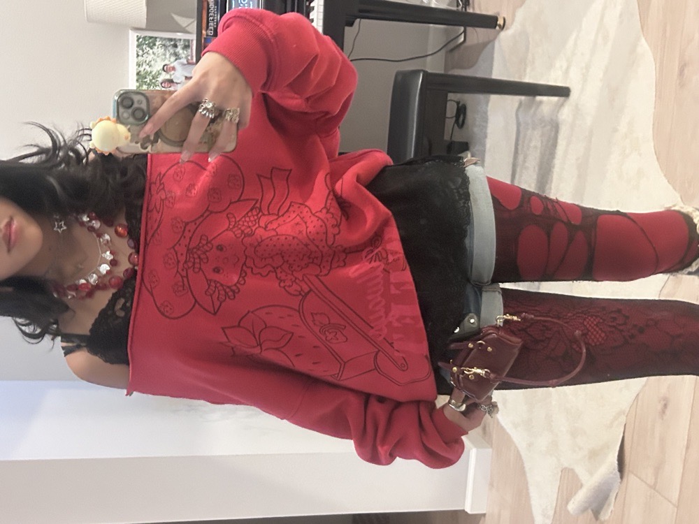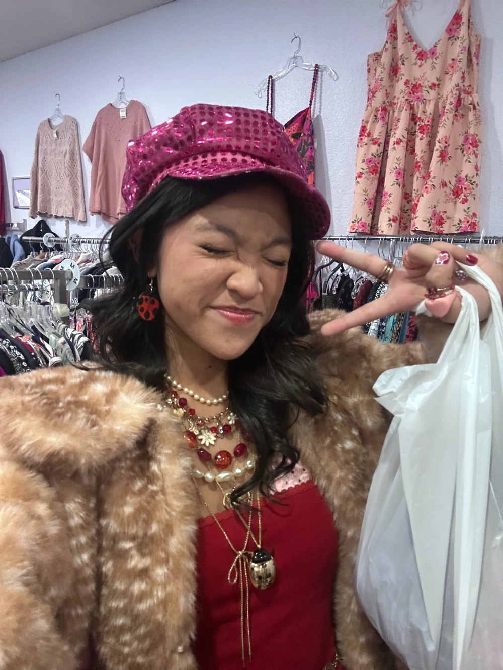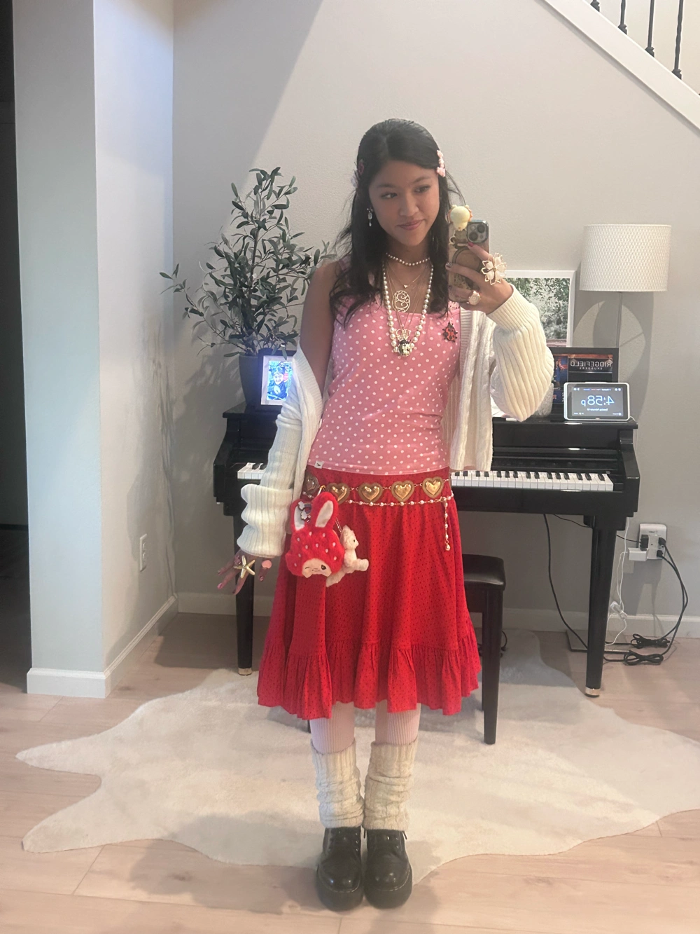 ik a mirror hatessss to see me coming #ilovemirrorpics im technically celebrating valentines day today cuz im not doing anything tmrw so heres my valentines day fit !! plus the cutest hat i found at the thrift that unfortunately doesnt fit me💔