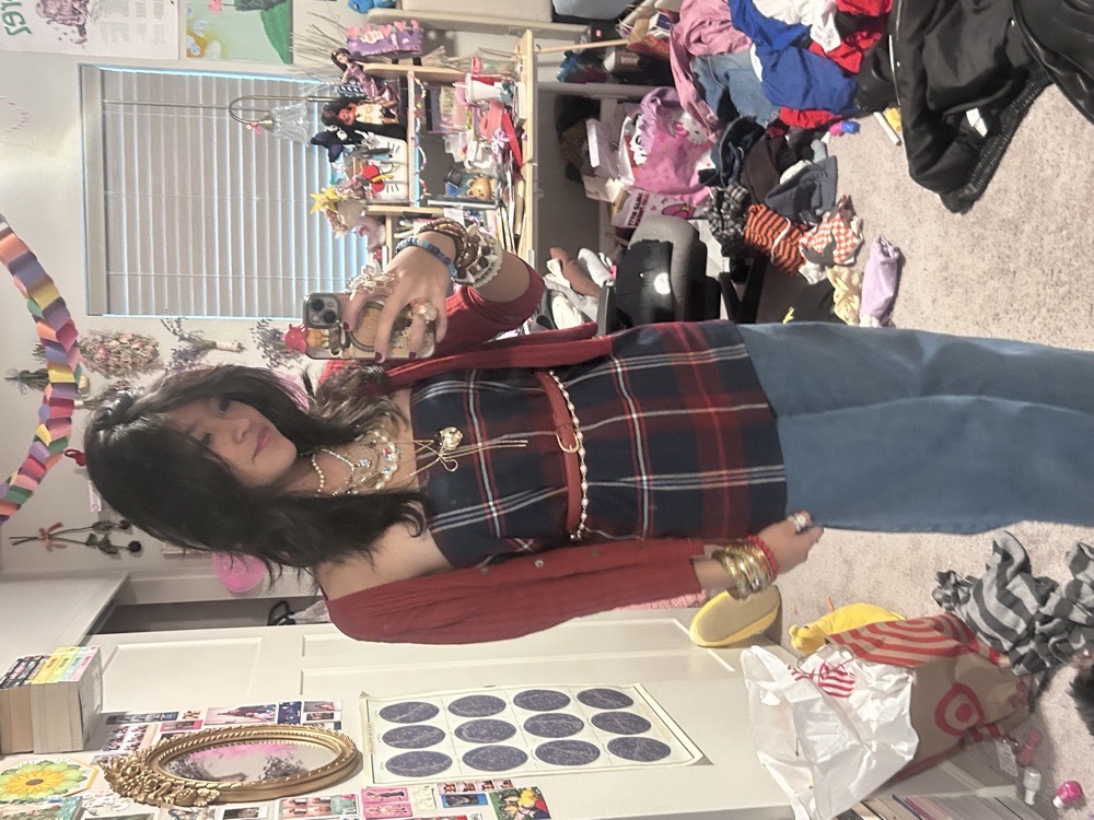 lowk kinda hated my fit today but by the time i came to that conclusion i was already at school so i accepted my fate💔and yes, im wearing 2 dif colored tights😹😹