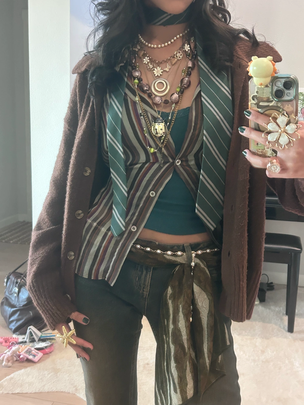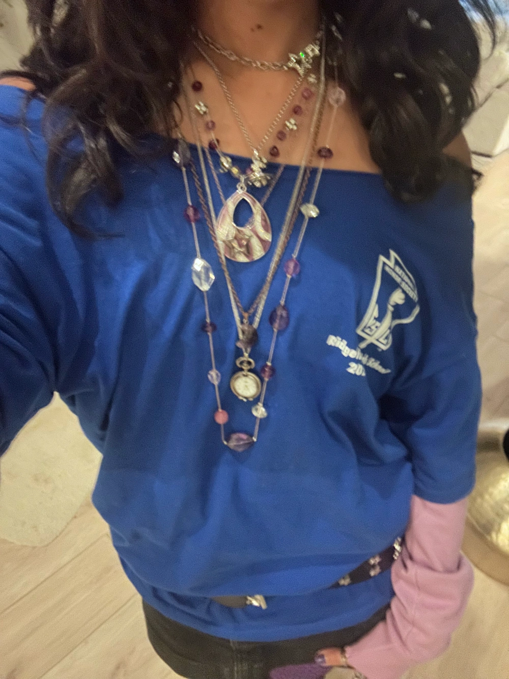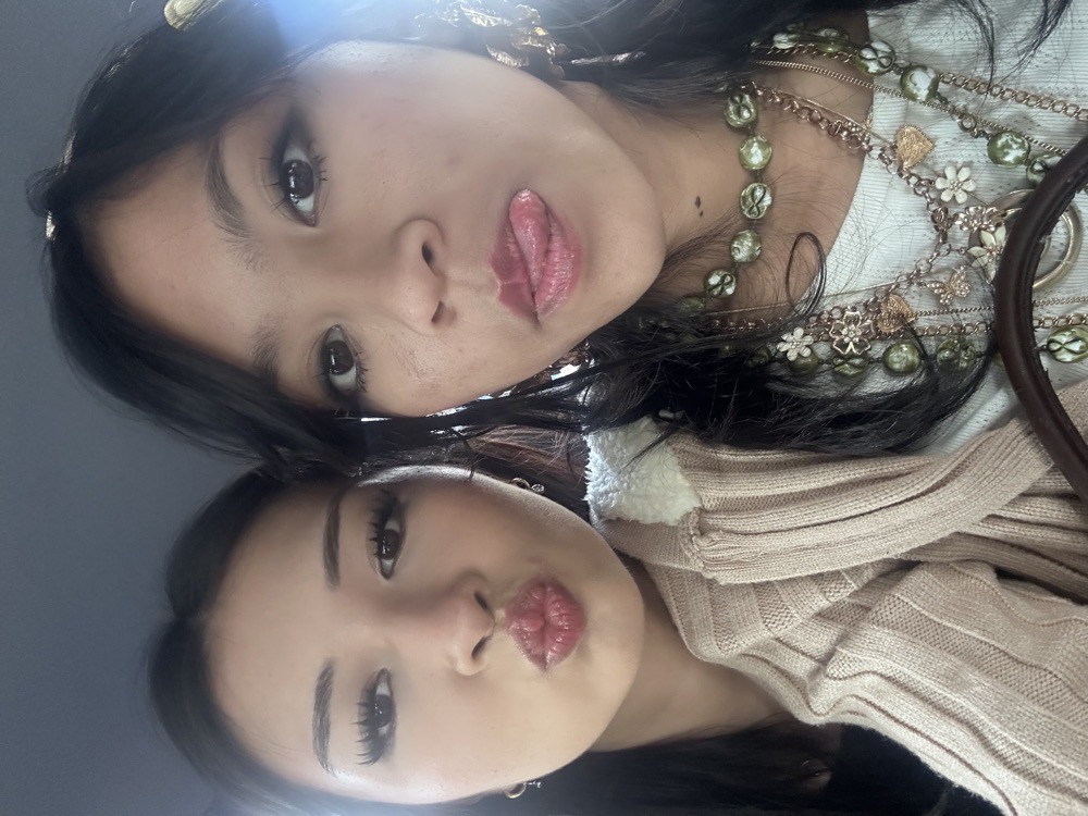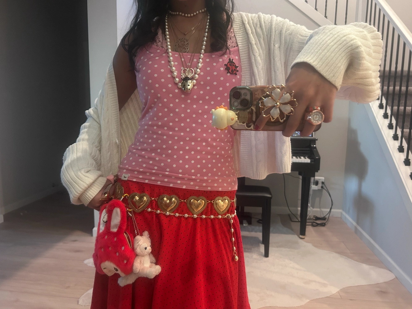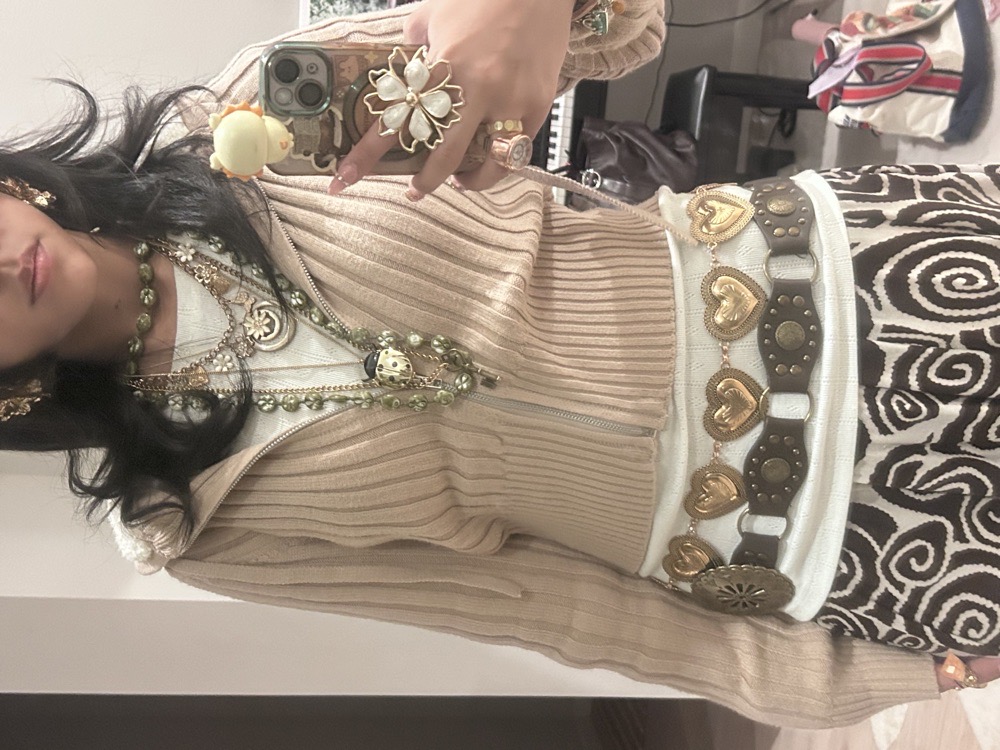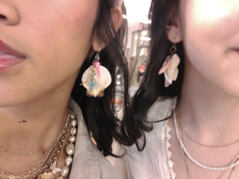 me and my friend had matching earings today !! super fun shell outfit today even though it was cold, my earrings and belt (that’s actually a necklace) r a matching set