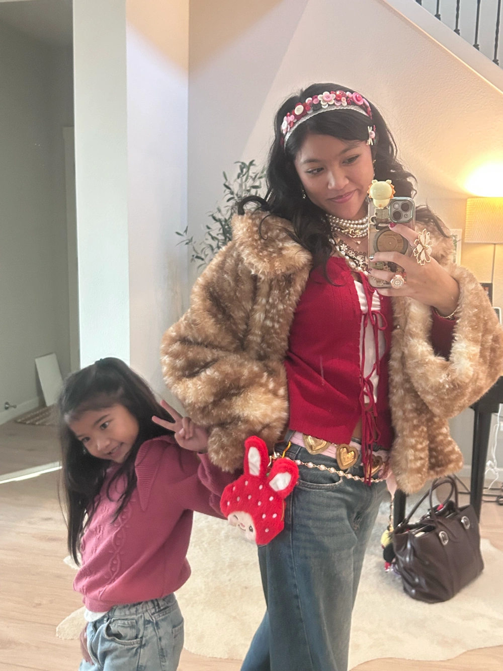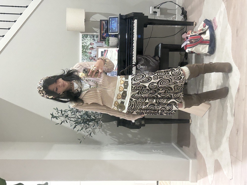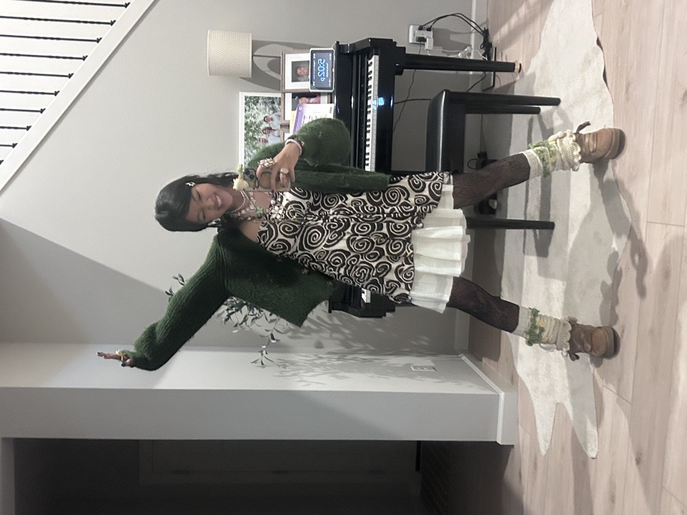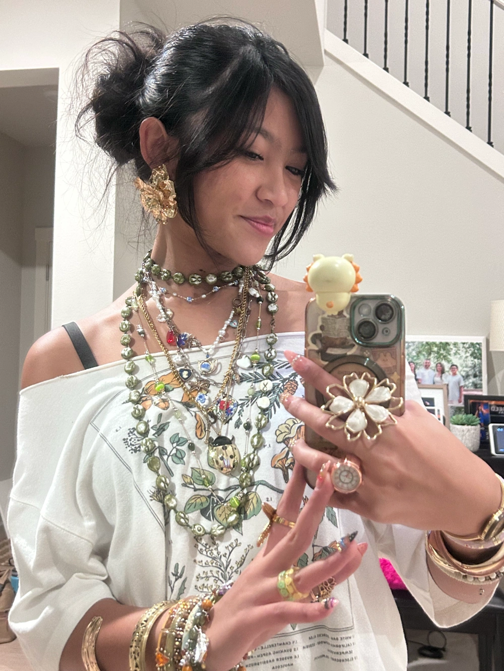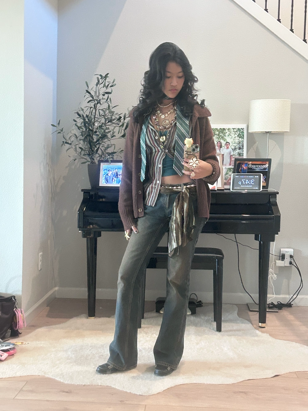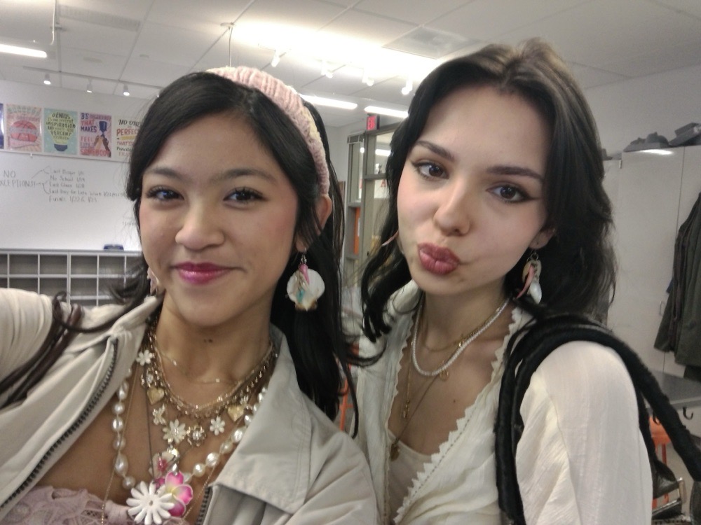 me and my friend had matching earings today !! super fun shell outfit today even though it was cold, my earrings and belt (that’s actually a necklace) r a matching set