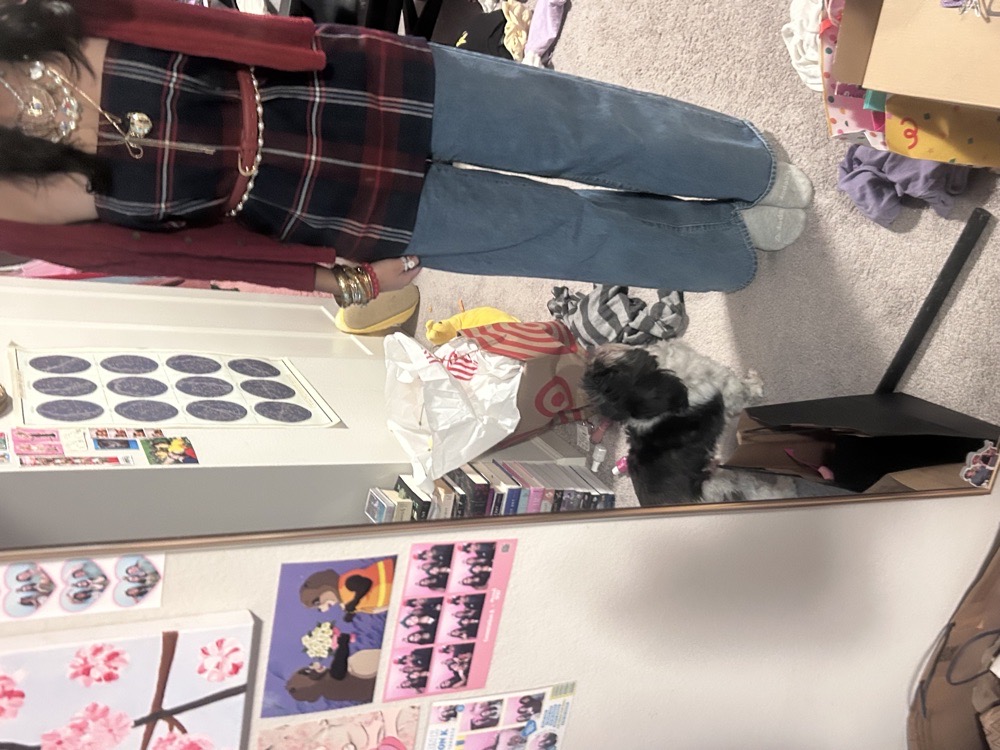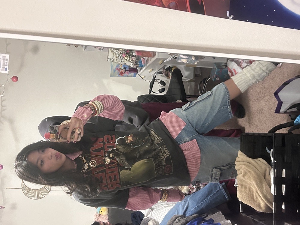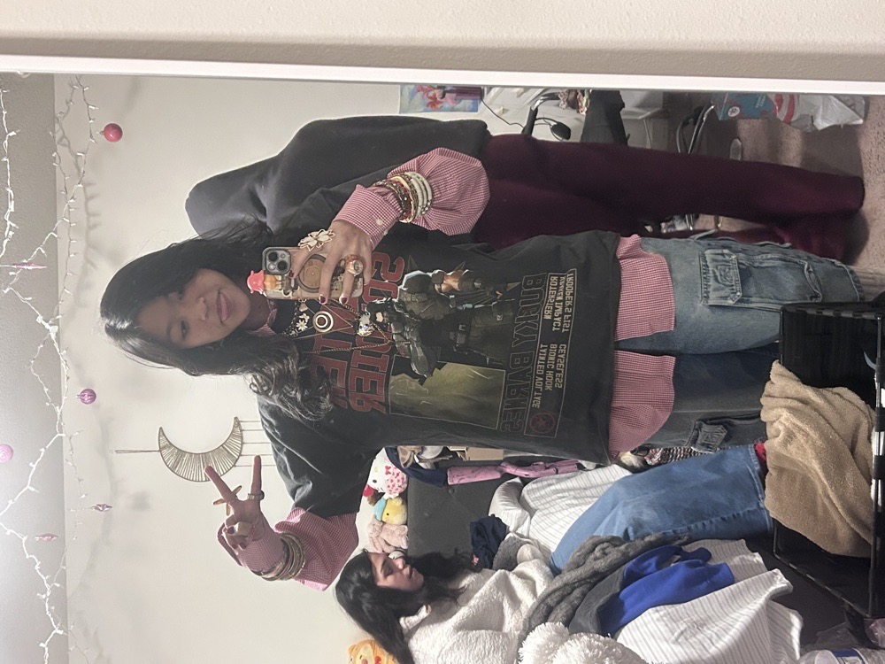 ootd from Wednesday morning before i left for school !! i genuinely crashed out this morning cuz my black w white polka dot shirt disappeared ??? idk where it is ??? i genuinely searched for 30 minutes and tore the house up and it’s still gone but i improvised and wore a dif shirt instead