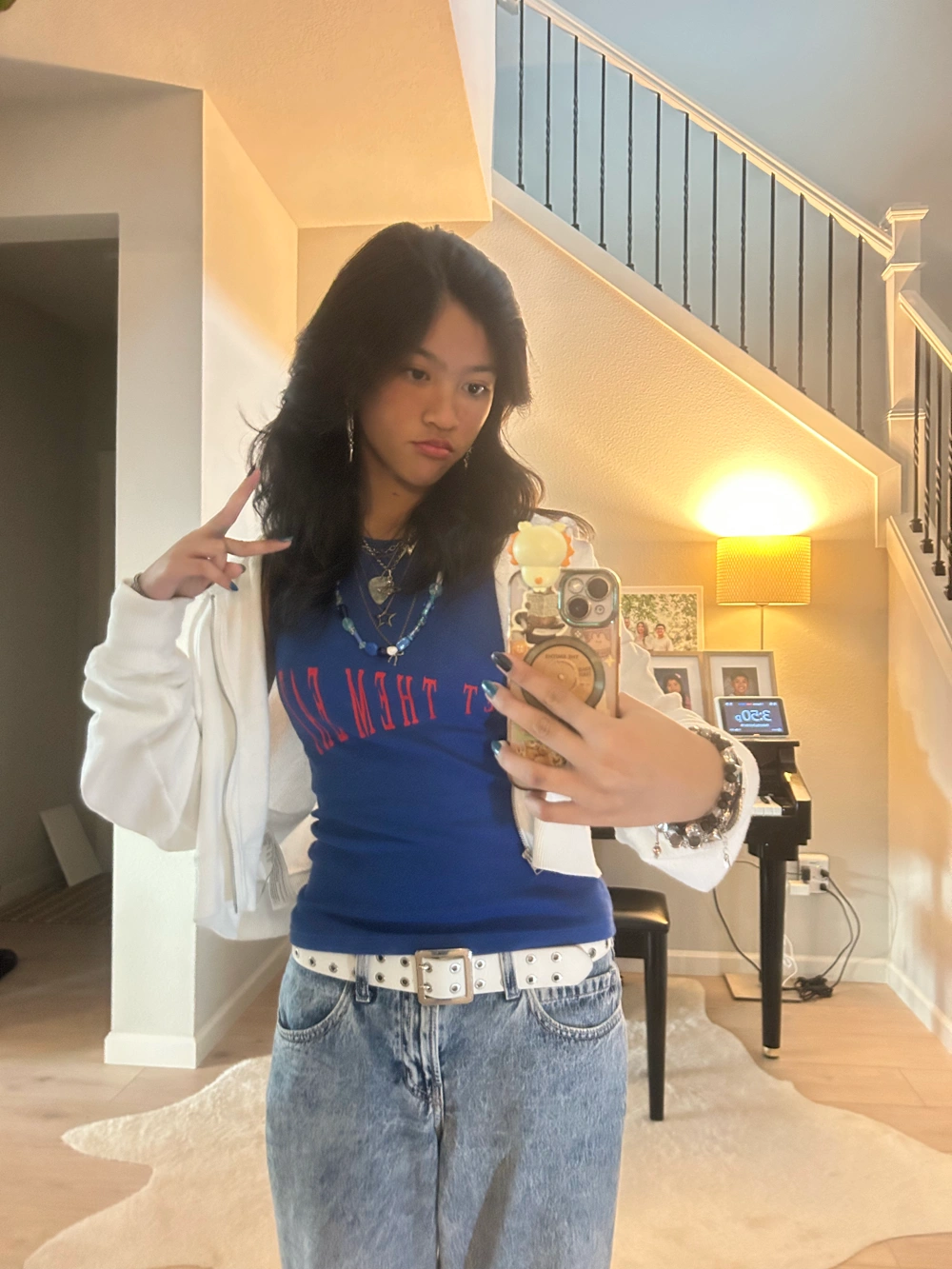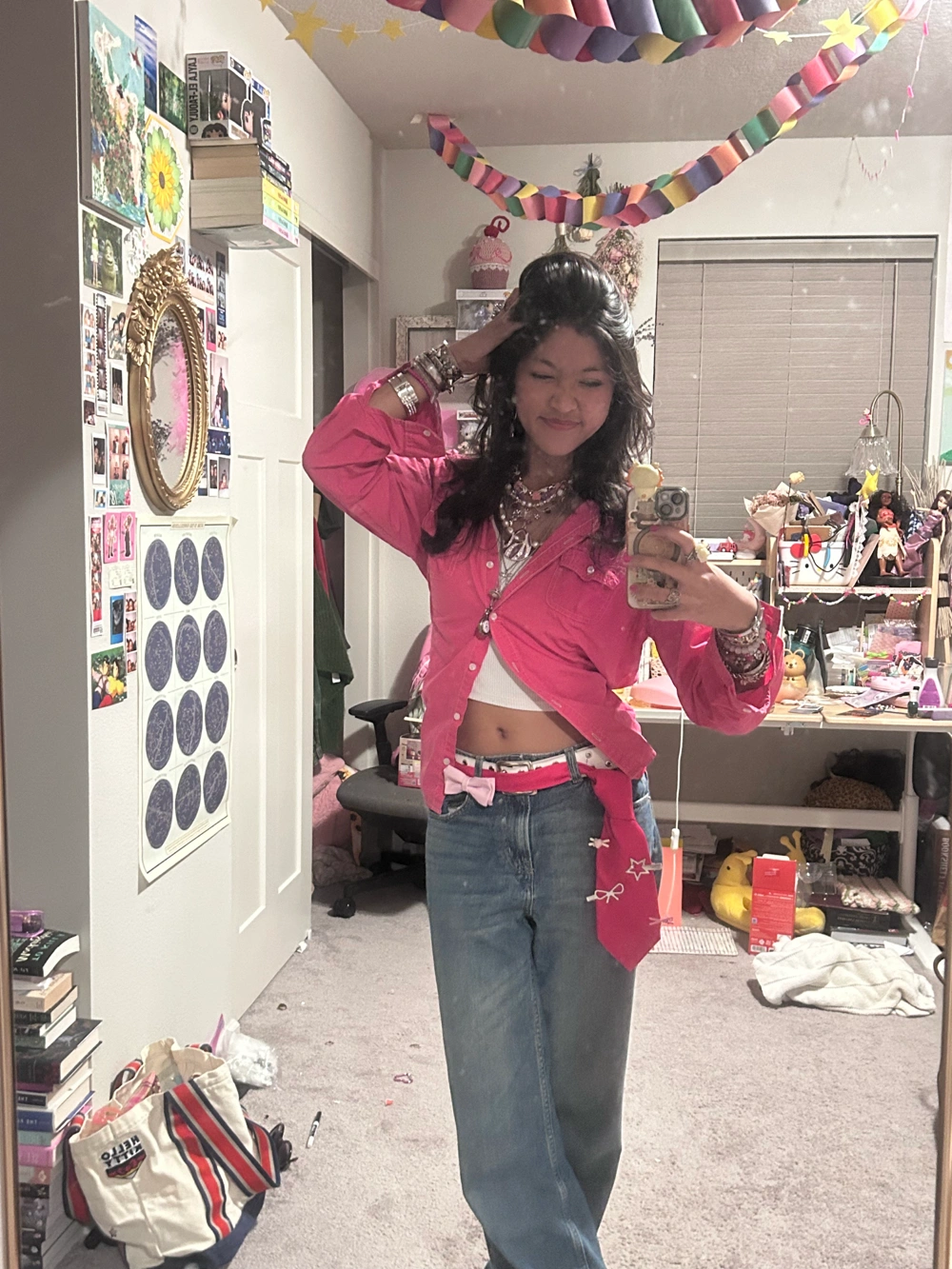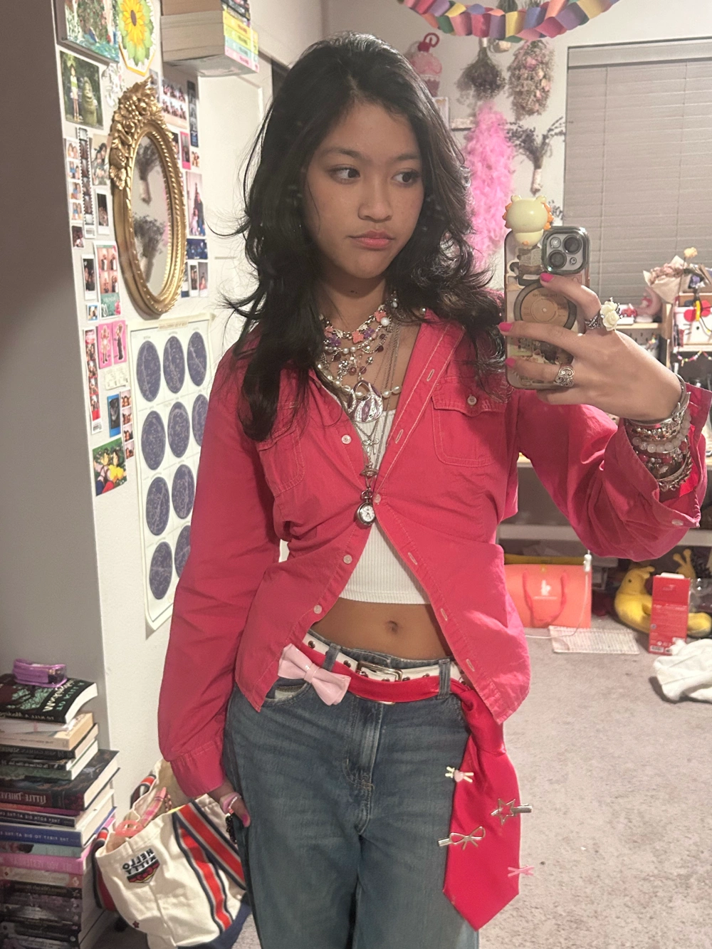 nhs nerfed me w this shirt so i had to make it cute somehow😭😭i also had to take my headshot for theater too today…js got back so my hair is deflated💔