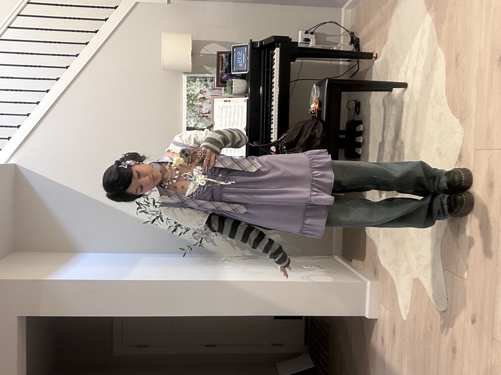 i dont have a theme of the week this week so im kinda js wearing wtv i want, fit inspired by nana ! tried a side bun and it came out pretty well, ive been wanting to wear this purple dress too since i got it on Friday