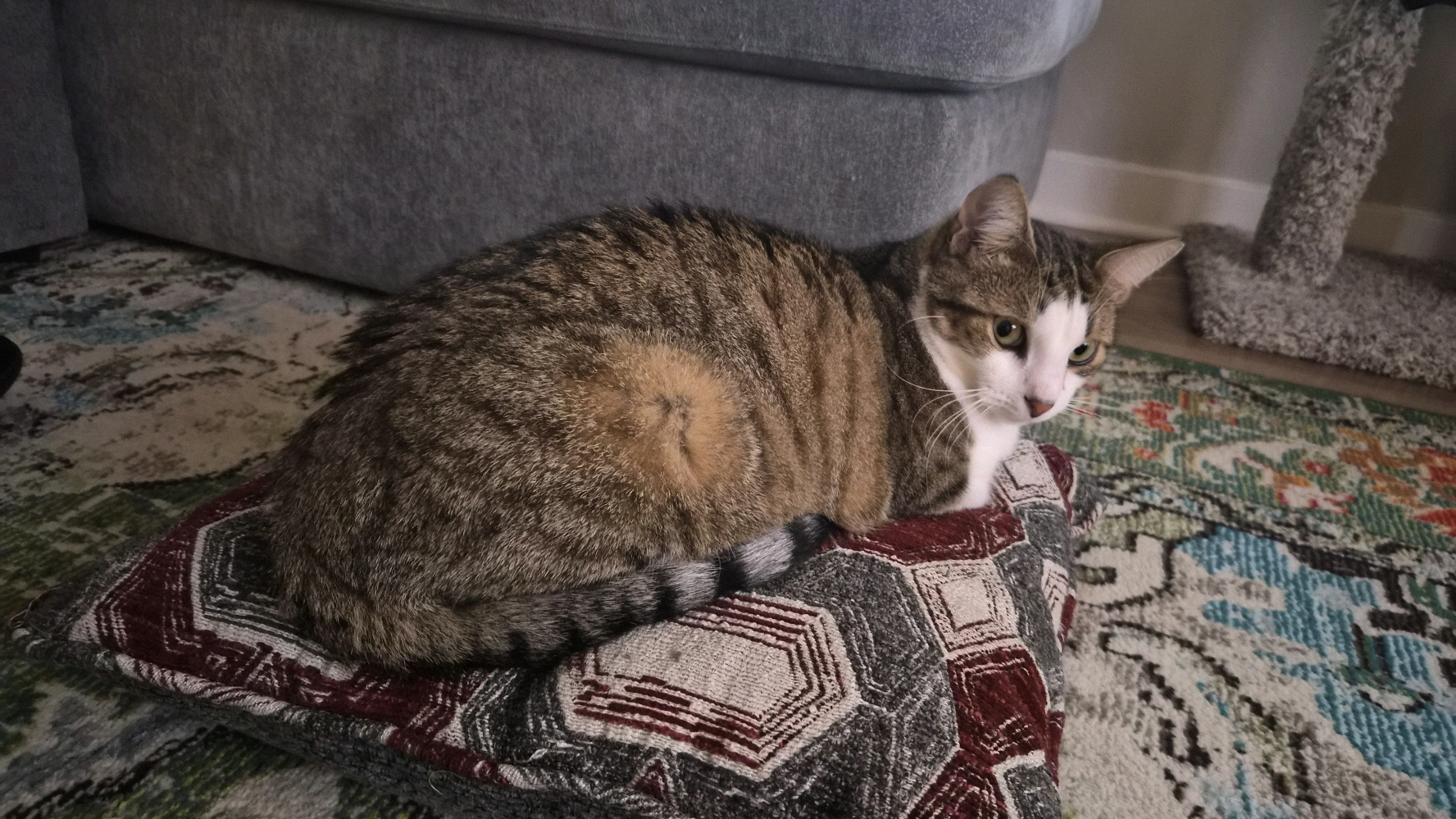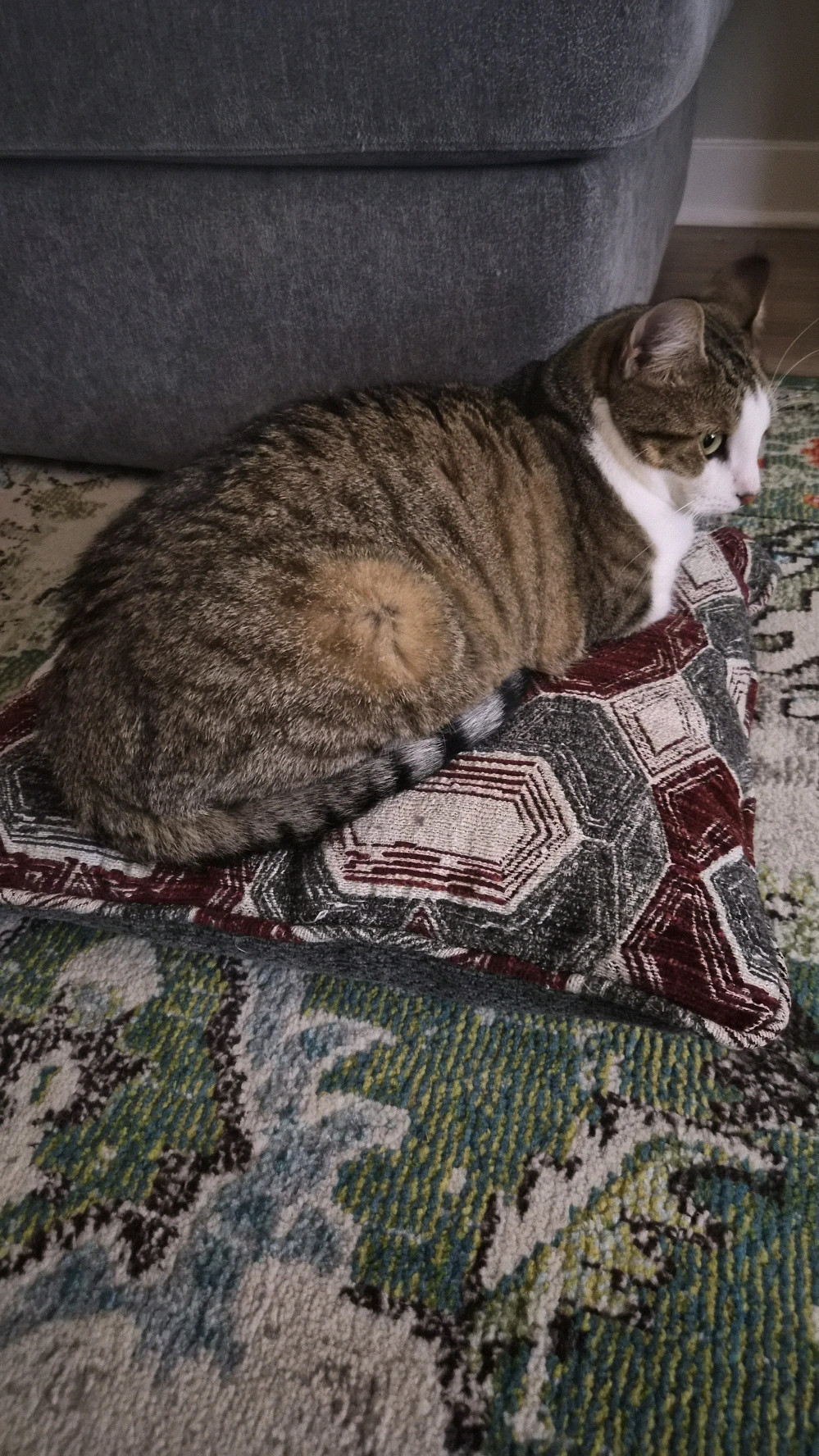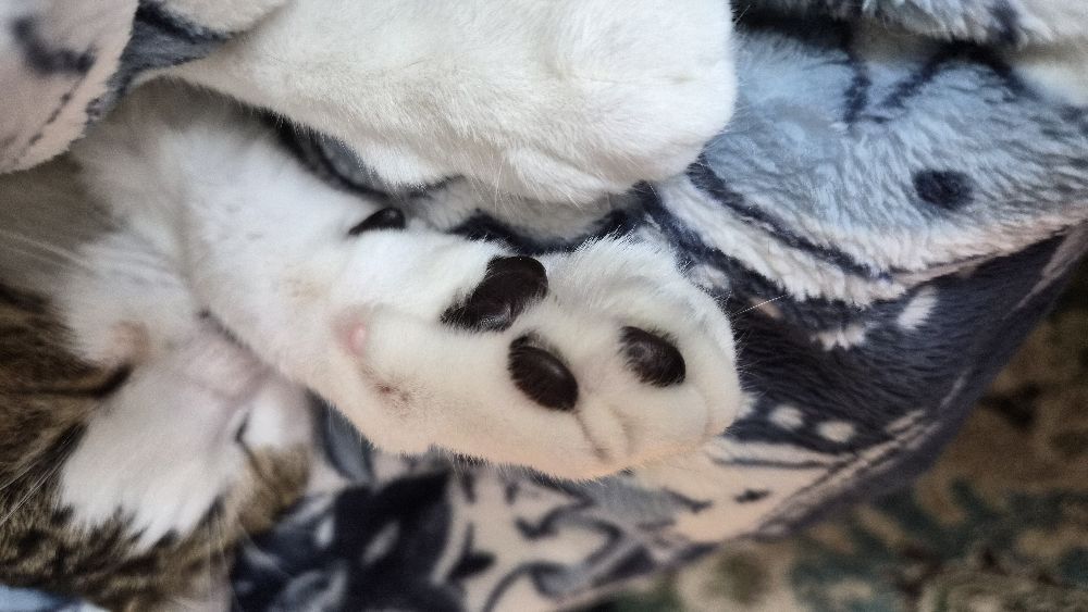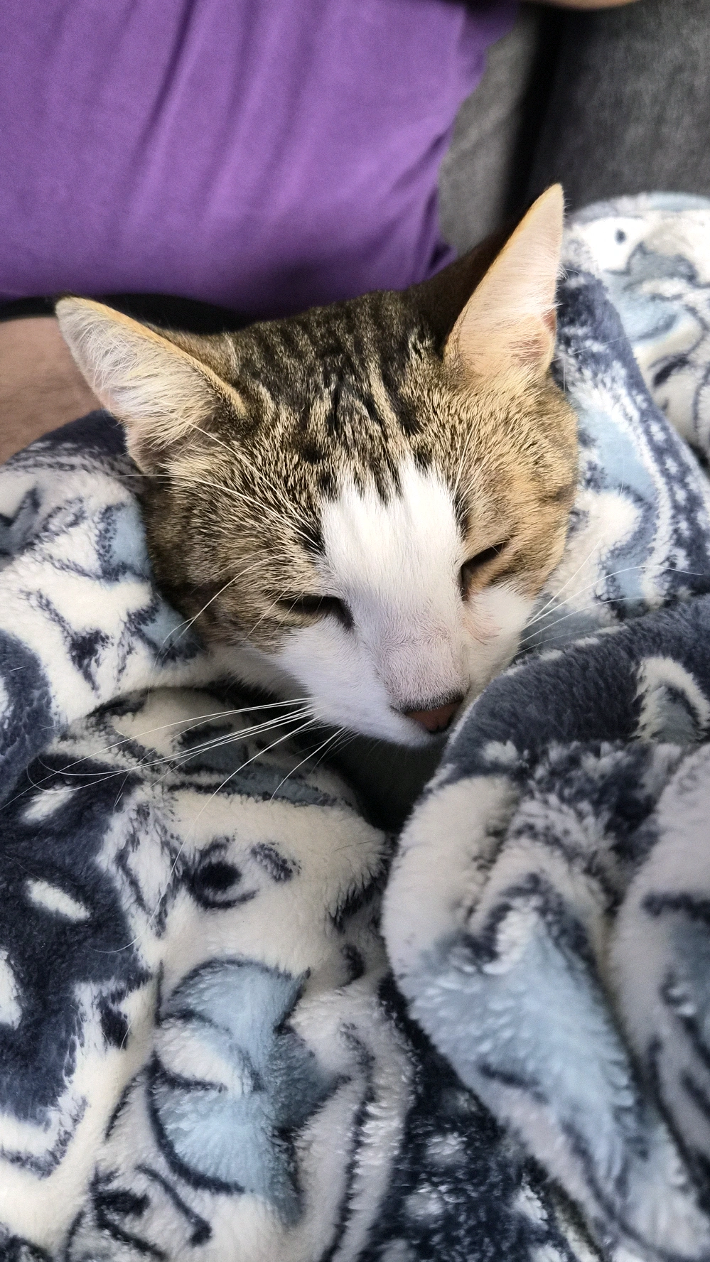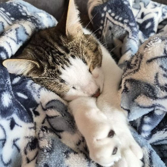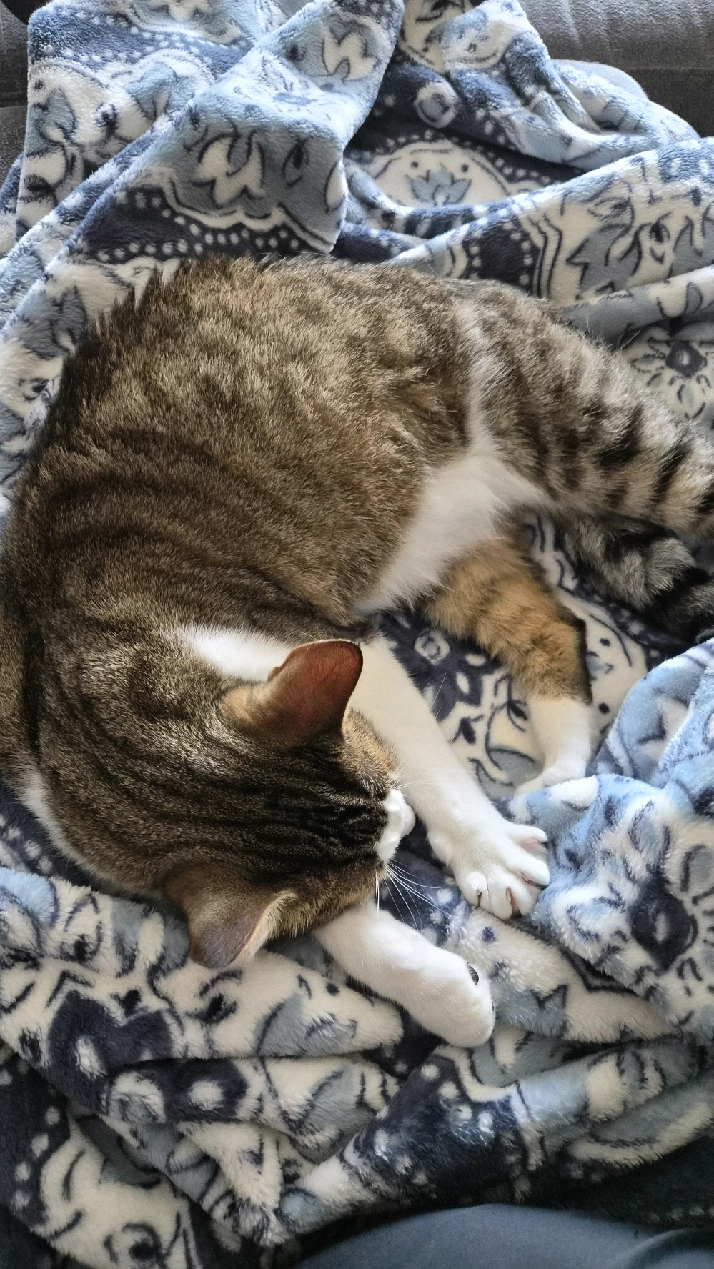 jim discovered the magic of sleeping under blankets this morning. my partner decided to slowly move the blanket on top of him while he was lying on the couch and he ended up falling asleep 💤 special appearance by his one pink bean 💕
