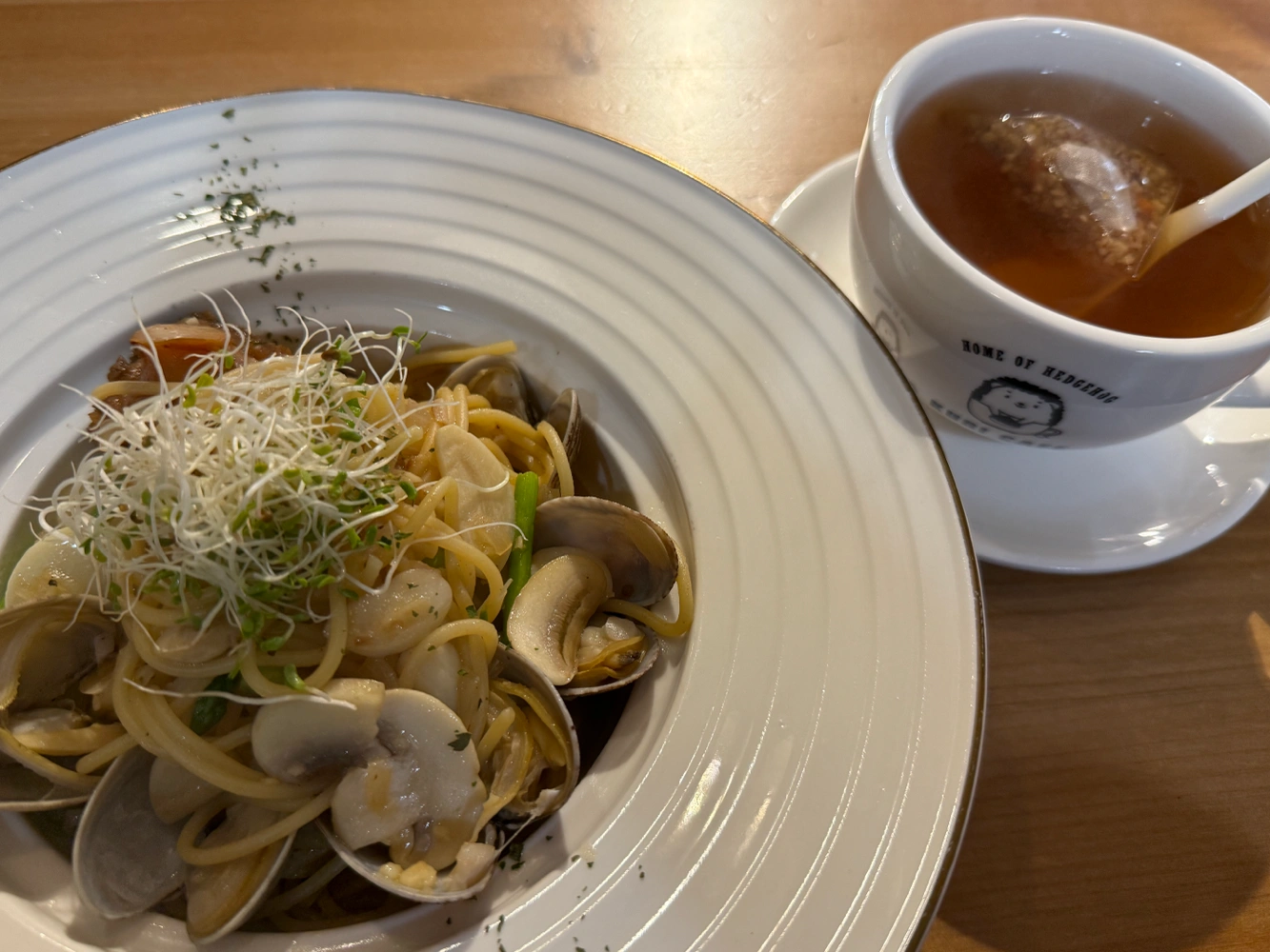this time came earlier after picking up something and putting it back home. also ate pasta downstairs.