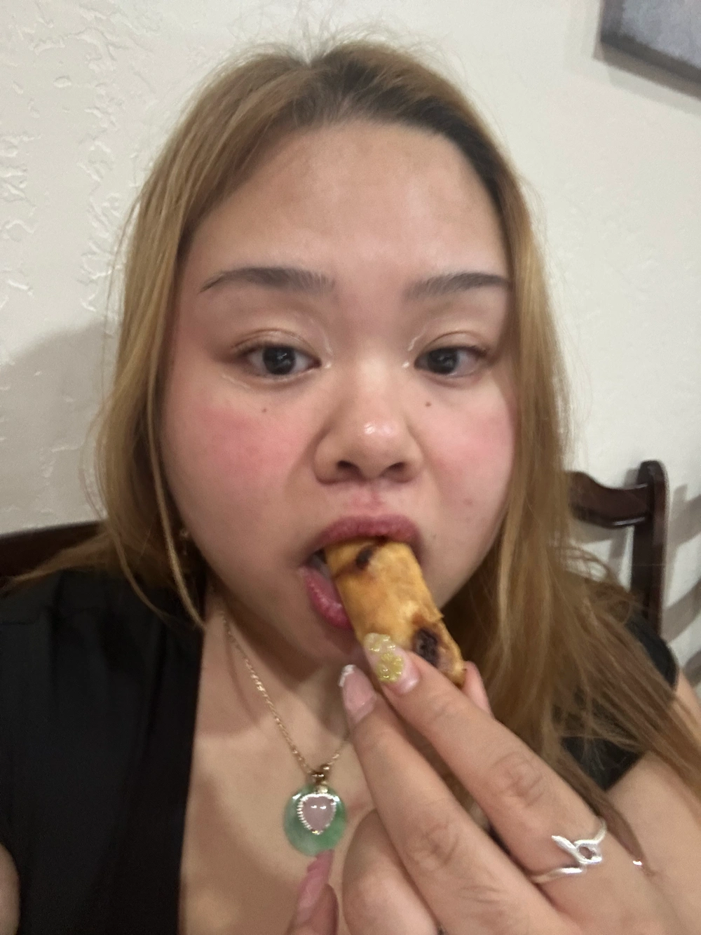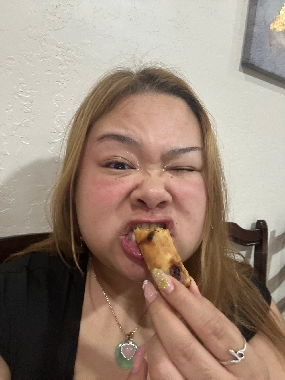 after working a 2-7, i went to kristina’s place after going by heb to grab her this bouquet of flowers. i lit up a pink j on the way and it was hitting in these pictures. the egg roll was fresh and hot so yeah i had to take reaction pics. anyways love u byeeee