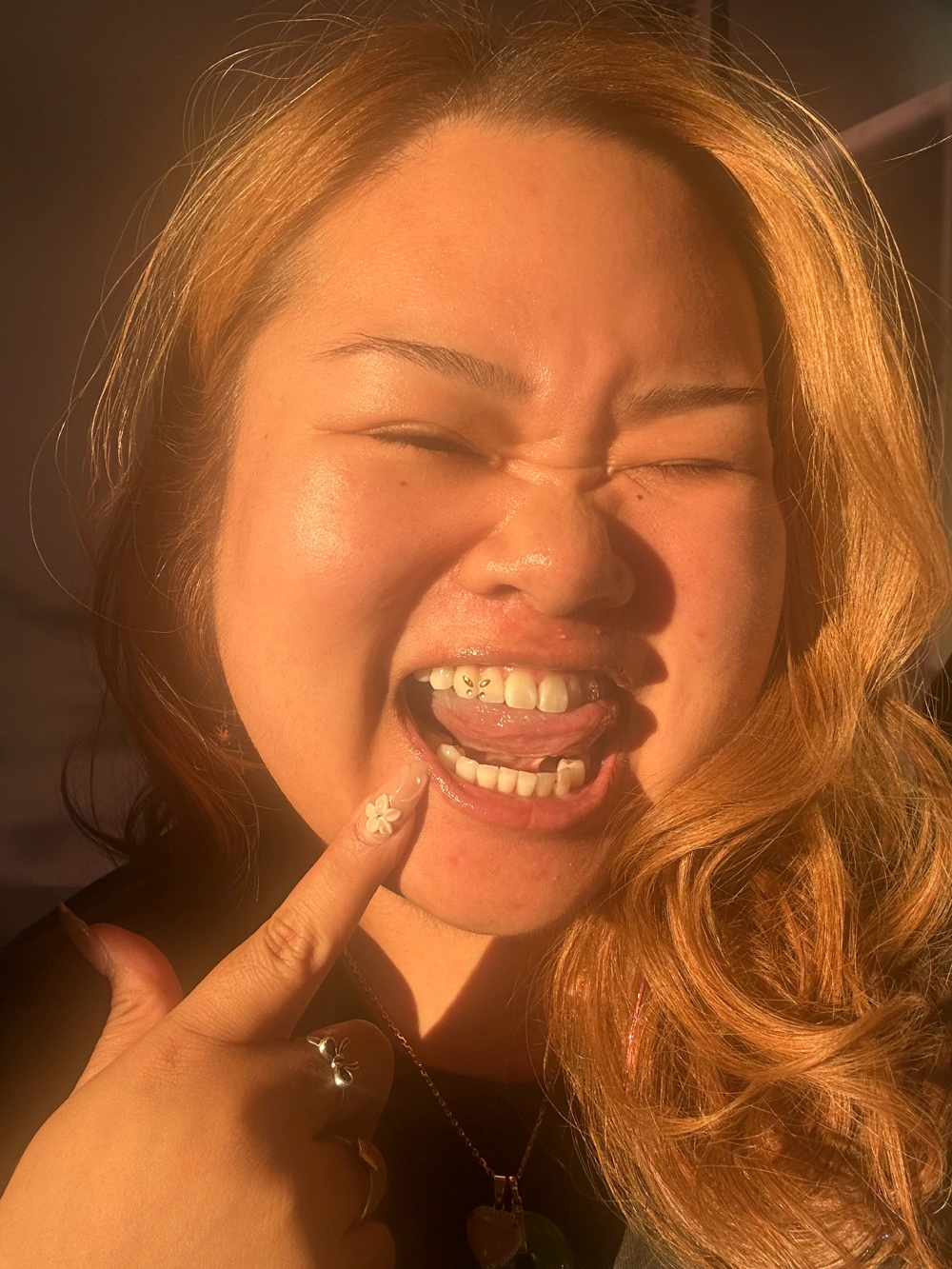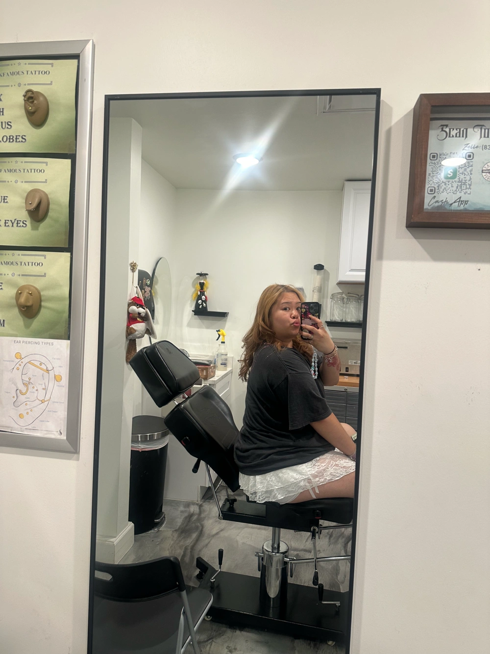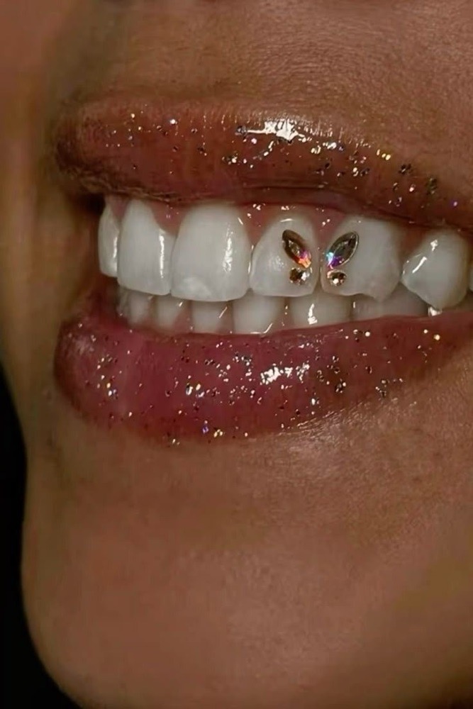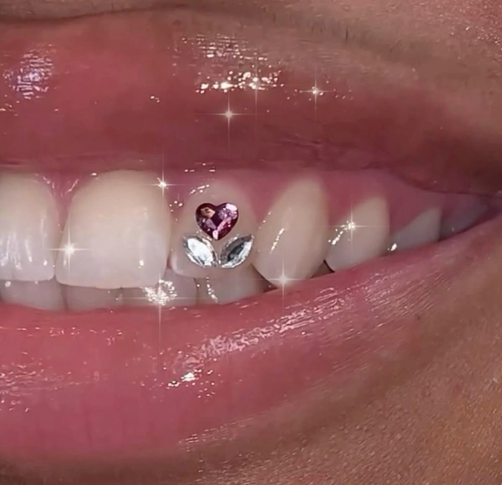 went back to inkfamous 3 in cypress to get my tooth gems done !! inspo pics are posted and although we couldn’t get exact, idc bc it’s still cute. unfortunately, the butterfly has fallen off as i’m writing this almost a week later, but i’m going back tomorrow to get them redone. i also got permanent jewelry done for free because i volunteered to be a model for them.