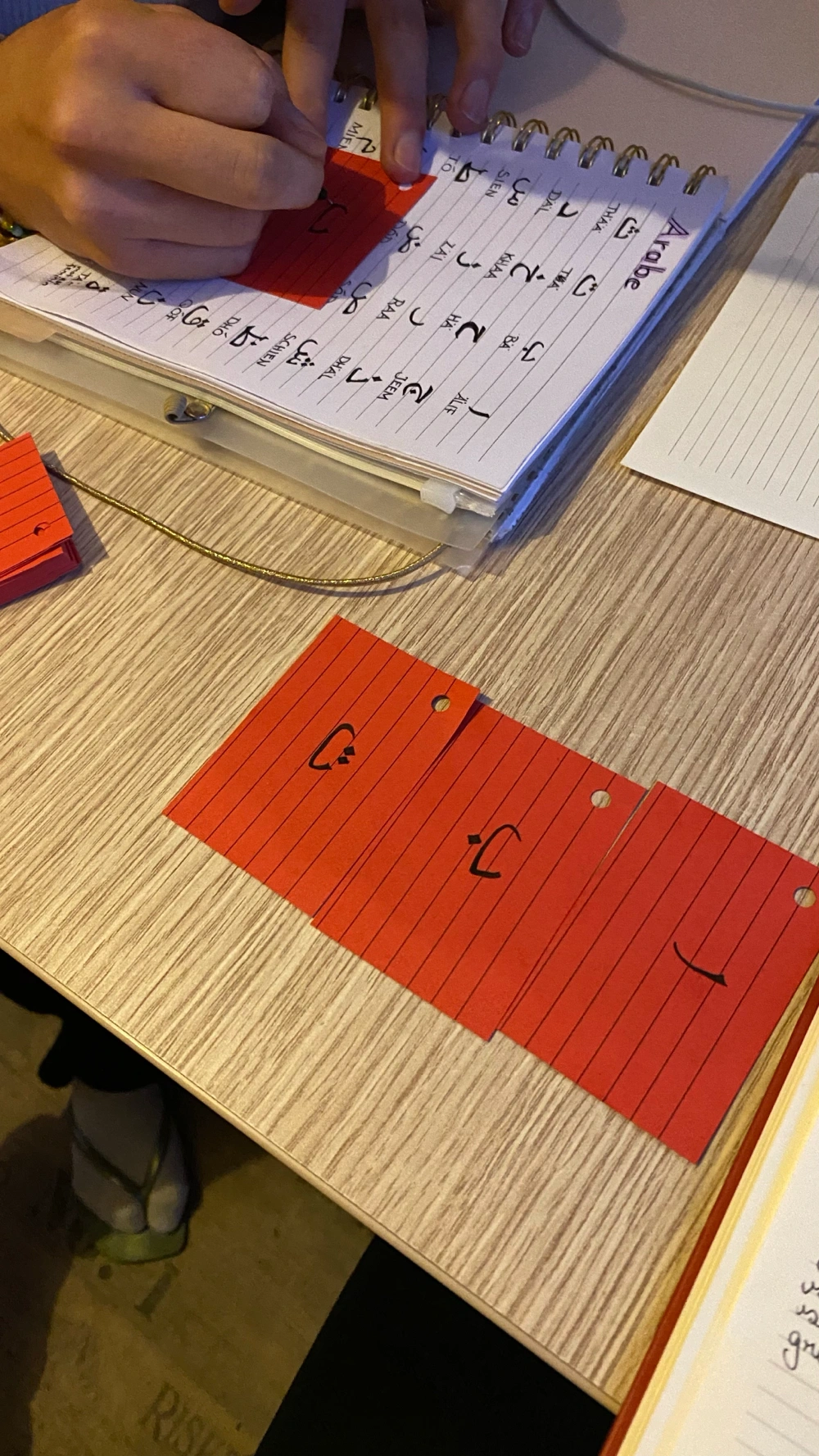 • primeiro dia estudando árabe • alfabeto fusha (pqp dificilimo) • tem que escrever da direita pra esquerda (pqp dificilimo) e ainda vou ter que aprender a desenhar esse alfabeto vou me m- • primeira frase aprendida “أريد أن أتعلم العربية” ana oreddo an ata’allam al-arabiyya to achando pouco estudar francês e ter que evoluir meu inglês e não estar fazendo isso decidi começar a estudar árabe! espero que dê certo e que isso pese no meu cv pra aviação, to muito motivada adoro esse gás de começo de ano
