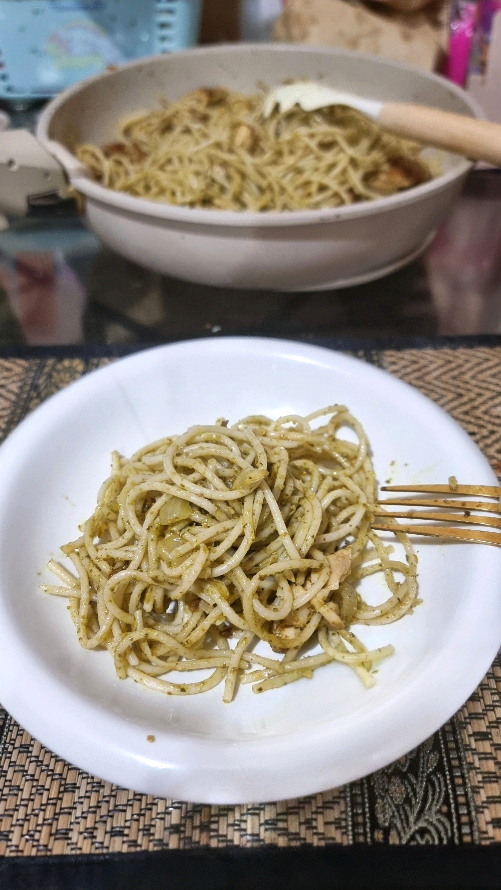 cooked chicken pesto pasta for dinner