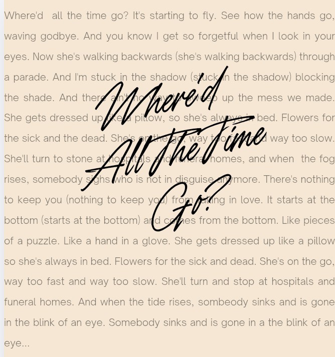 I start this day looking back on my life, all the happy memories, the sad ones, and the ones I wish I could forget, and I ask myself: where did the time go?