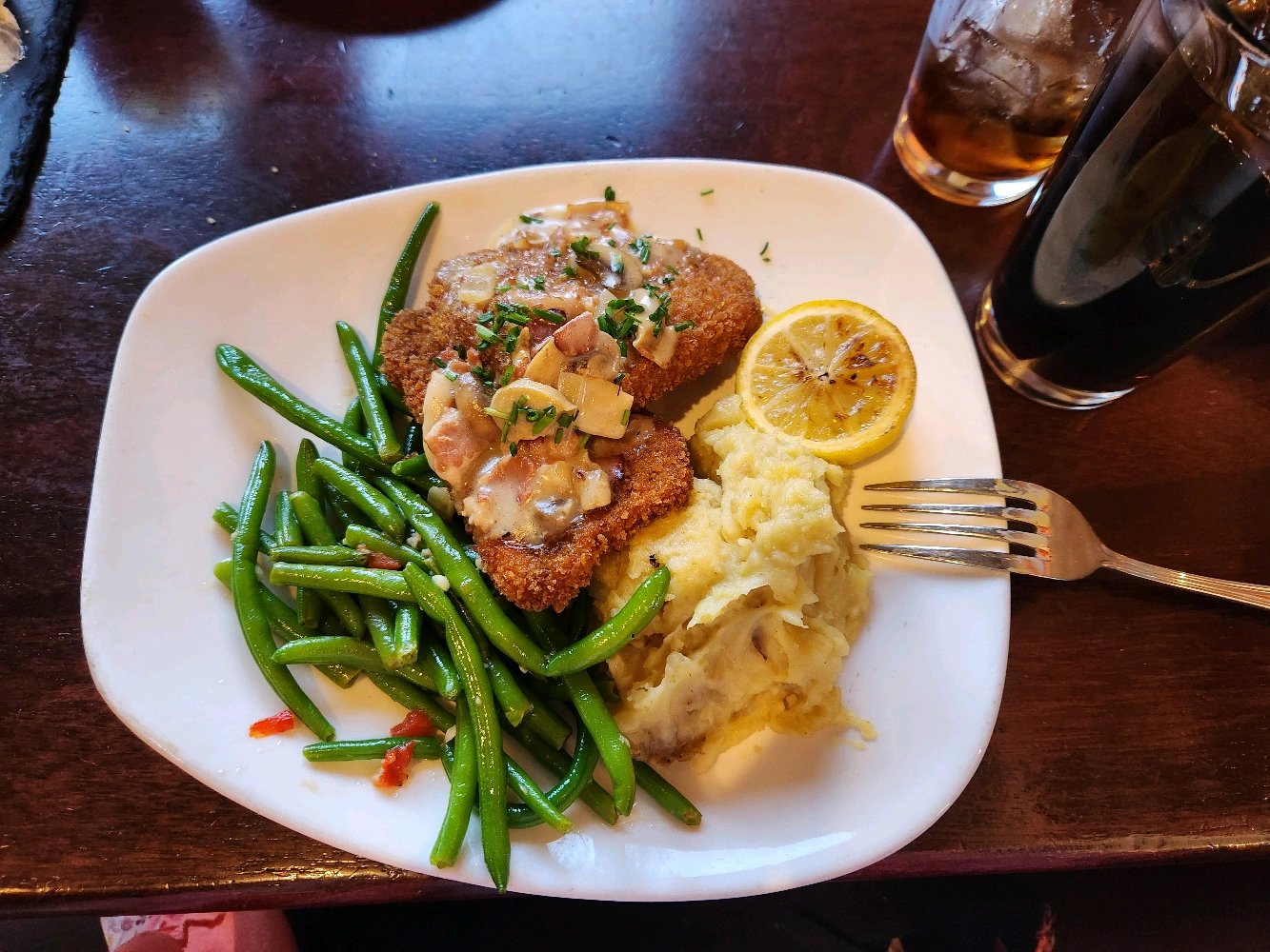 the schnitzel was okay, the dessert was great, and i got to be with my parents alone \(^∇^)/