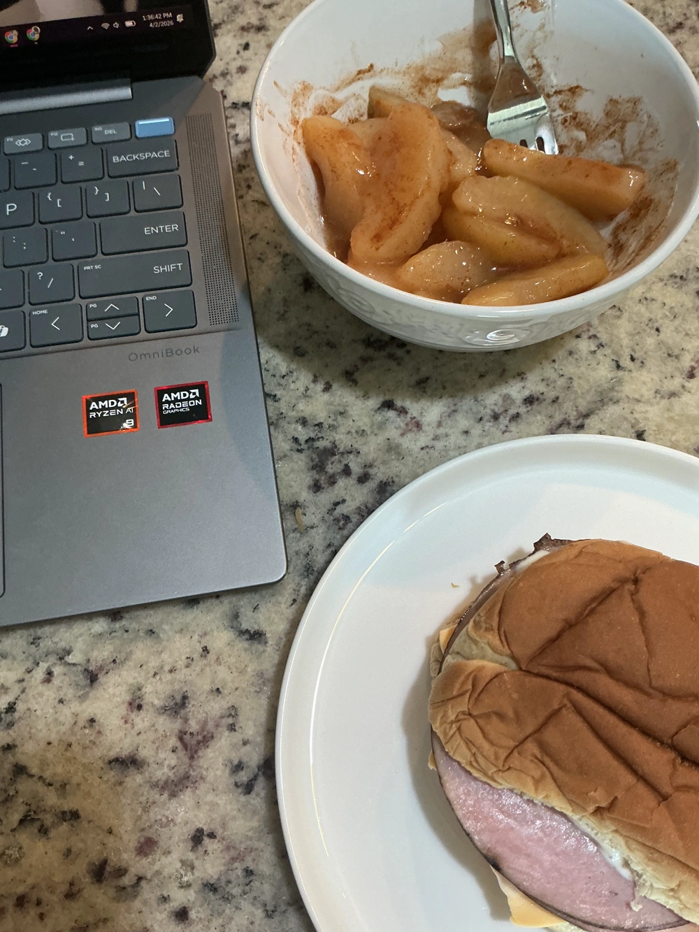 trying to use what’s left in my cupboard but it’s an absolutely BORING sandwich because i only have meat, cheese, ranch and HAMBURGER BUNS??? bare bones sandwich right here. girl i am in distress. no pickles, onions or tomatoes but i don’t feel like getting groceries rn. also had some low sugar apple pie filling in the fridge that i needed to get rid of so i added some extra sugar and cinnamon to make it a lil more tasty :)