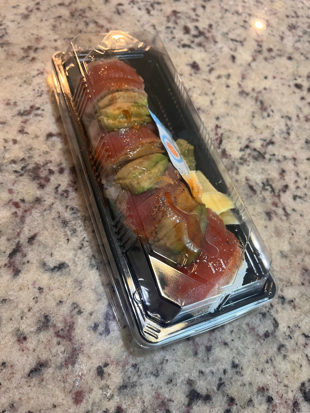 idk man, just been on a sushi trip this week. decided to try this one to go beyond my comfort zone and was a tad disappointed? i expected it to be a bit more flavorful but alas it was not. maybe i’m not eating it right? who knows. also the rice was a bit hard but other than that pretty good sushi!!
