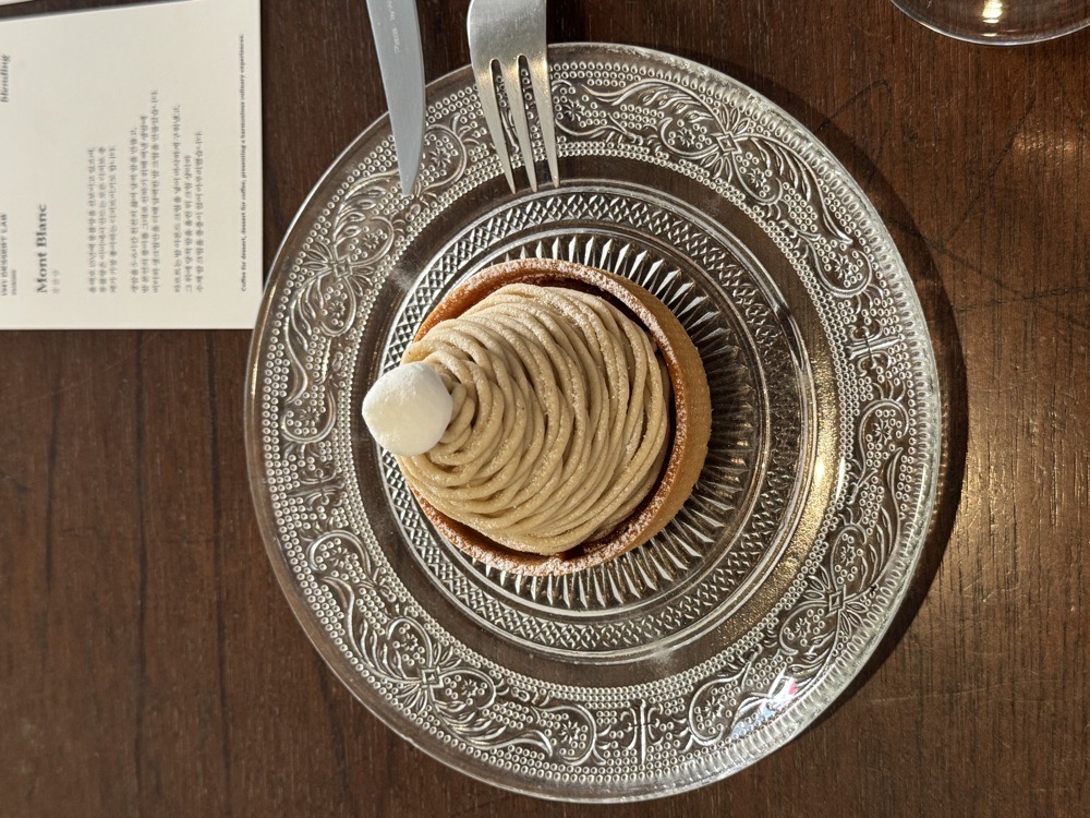 피켄드 커피 사장님이 카페를 몇 곳 추천해주셔서 찜 해둔 곳. 피켄드 커피가 맛있어서 자주 방문했는데 어느새 같이 덕질(?)도 같이 하고, 수다도 떨 수 있게 되어 기분이 좋다. 이런 작은 만남으로 행복해지는 것 같다. 아무튼! 매장을 방문했고 생각보다 인기가 많아서 평일에도 웨이팅이 있었다. 들어가기 전에 디저트 목록을 봤는데 다 너무 궁금했음. 다음에 누구 데려와서 같이 즐겨야겠드아.. 고민하다 가을이니까 밤맛이 나는 몽블랑으로 선택~~ 밤 맛이 잔뜩 나는데 많이 안 달고 바삭한 아랫 부분이 너무 좋았다. 몽블랑에 어울리는 커피를 추천해주셔서 같이 주문했는데 너무 잘 어울려서 깜짝 놀람… 퀄리티 있는 깔끔한 커피를 마시고 싶을 때 종종 방문 할 것 같다.
