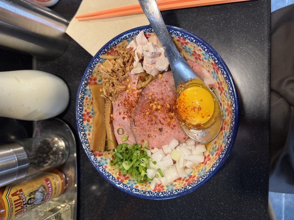 갑자기 느끼하고 진~하고 짭짤한 음식이 먹고 싶어서 생각하다가 간 아부라소바집! 아부라소바를 아예 먹어본 적이 없어서 어떤 맛일까 싶어서 궁금.. 역시 맛집 답게 웨이팅은 꽤 있는 편이지만 회전율이 높아서 금방 들어갔다. 메뉴는 카니(게)도 있고 바질?!도 있고 신기한 맛이 많았는데 처음엔 바질로 먹고 다음 방문엔 기본으로 주문. 지금 이거 쓰면서도 너무 땡겨… 면에도 간이 잘 들어 있어서 전체적으로 짭짤한 편인데, 여기 식초랑 마요네즈 뿌려 먹으면 진짜 맛나다… (개인적으로 마요 추천. 히지카타가 되.) 느끼한가 싶을 때 맵삭한 양파가 씹혀서 딱 좋다!!! 아 안되겠다 내일 또 간다
