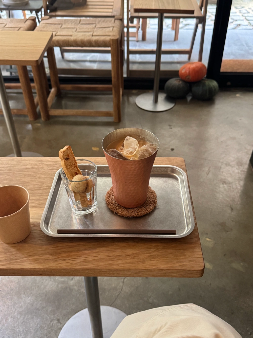 저번부터 눈도장 찍고 있던 커피숍에 방문! 넓은 창이 있어서 너무 좋았다. 커피 한 잔 시키고 매장을 가득 채운 시나몬 번의 향에 결국 하나 주문..! 근데 주문하길 너무 잘했어. 날이 쌀쌀해서 사장님께서 티를 한 잔 내려주셨다. 멍멍이랑 편하게 앉아 있으니까 이게 사는거지 싶다. ww