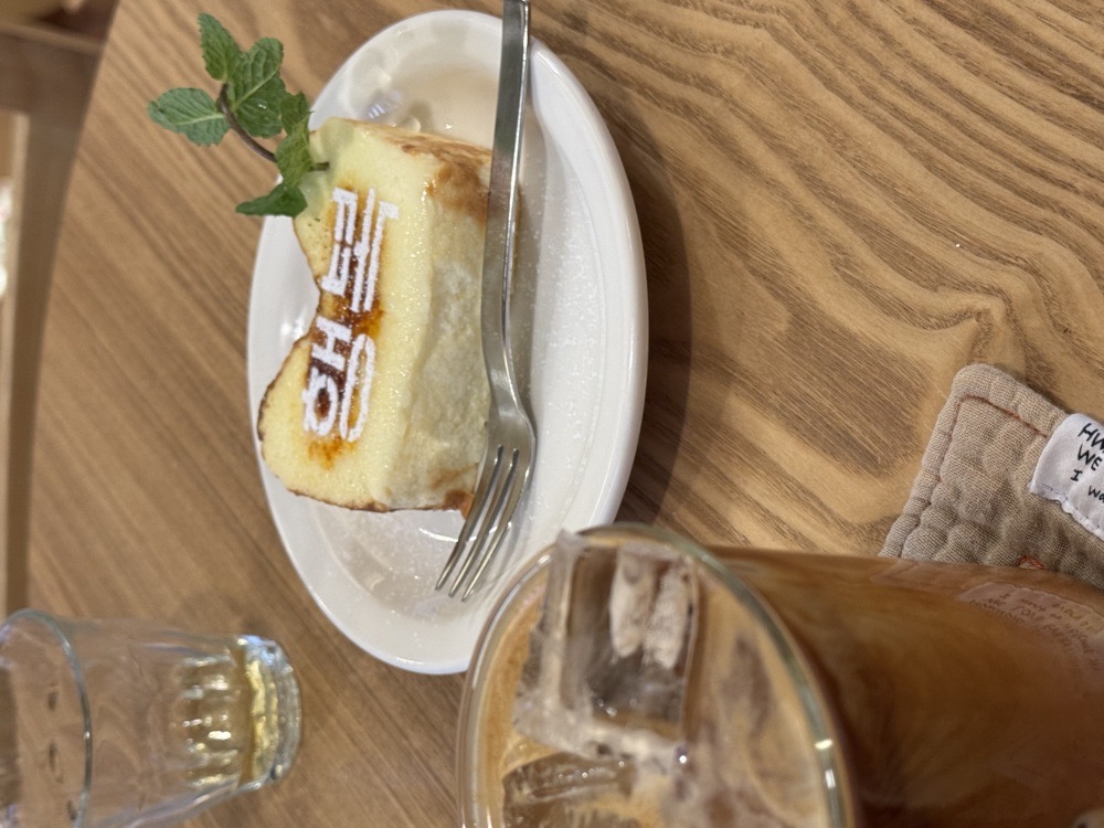 환대 받는 기분을 느끼고 싶다면 매장을 방문하라! 이 날은 모자를 쓰고 나갔는데 나랑 똑같은 모자를 주문하셨다고 말씀해주셔서 공통분모 1 내가 가지고 다니는 가방이 어떤 가게의 굿즈인데, 거기 가보셨다고 말씀해주셔서 공통분모 2 저희 공통점이 참 많네요~^^* 웰컴티 드시면서 잠시만 기다려 주세요~ 라고 하시면서 어깨를 토닥해주셨는데 왜 환대 커피라고 이름을 지으셨는지 알 거 같았다 파운드 케이크랑 치즈케이크 고민하고 있으니 ‘고민하실 필요가 없으세요. 저희 치즈케이크 맛있거든요!’ 라고 하셔서 홀린듯 주문 ㅋ ㅋ 그리고 너무 잘 주문했다는 ㅠ ㅠ 위에 크림 브륄레처럼 설탕 코팅이 돼있는데 너어무 좋았다 얼마 전에 고구마 브륄레 먹으러 갔다가 새카만 고구마를 마주해서 붐따였는데 힐링.. 산미가 크게 없는 다크한 커피로 시그니처 커피가 짱 맛있었다 페이버 커피의 썸머라떼가 생각나네… 진짜 맛있는데