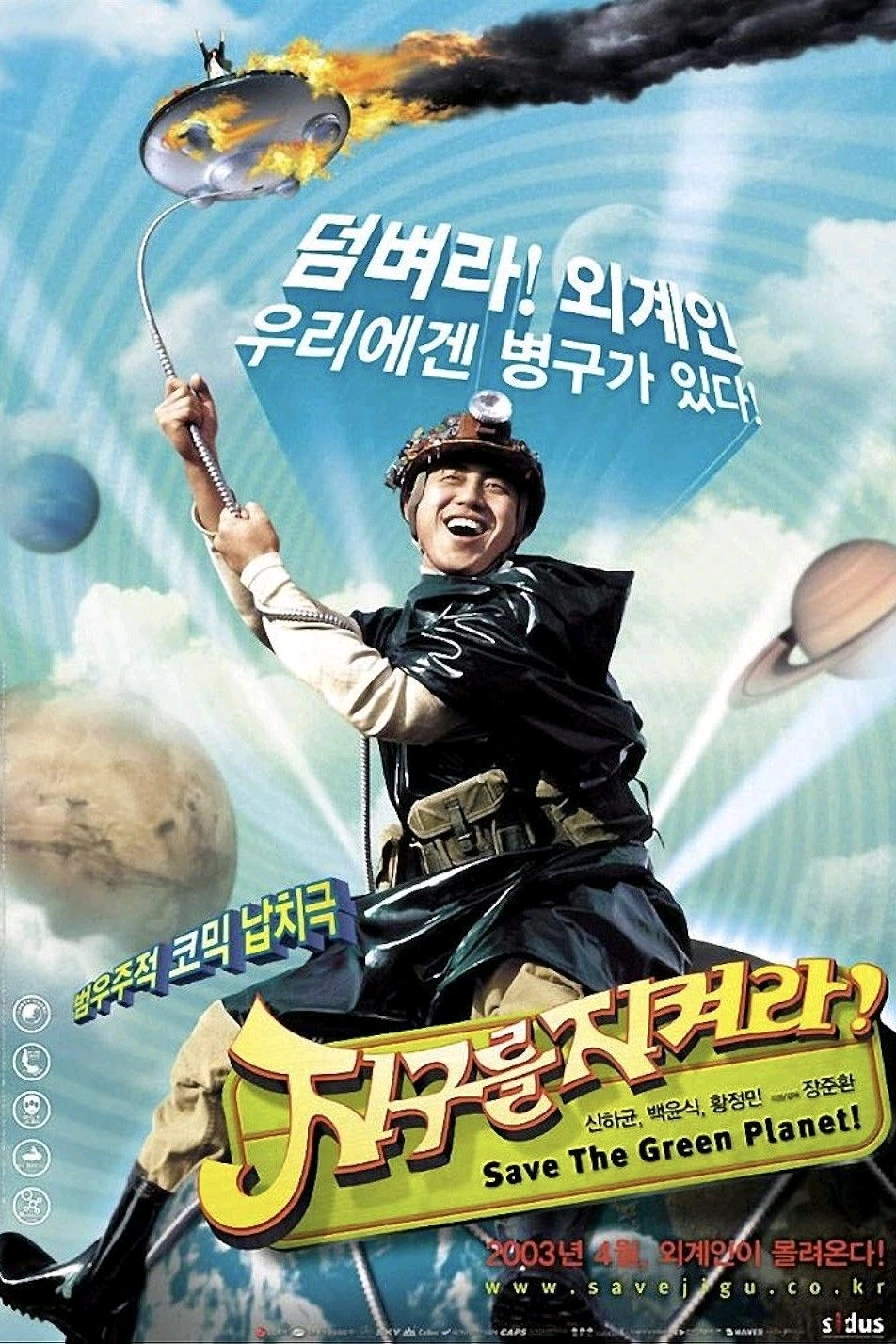 새로운 장르의 변주를 어떻게 받아들여야할 것인지. 외계인의 텔레파시를 차단한다고 물파스를 바를 때는 정말 신박한 고문이라 생각했다. 빡빡이의 백윤식은 정청래를 닮았다. 영화의 장르를 특정하기 어렵다. 코미디스럽기도 하면서 쓰릴러적인 면도 있으며 어느 장면은 고어적인 장면도 있다. 하지만 쓰릴러적으로 봤을 때 긴장을 놓치지 않고 봐왔었다. 특히 병구가 정신병자라 생각했는데 진짜 강사장이 외계인임이 드러났을 때도 잊을 수 없다. 이전부터 많은 암시가 있었다. 관객은 여전히 아리송하다. 진짜 외계인인지 아니면 강사장이 소설을 쓰는건지. 그리고 공격을 받기 전까지는 강사장이 만든 소설인줄 알았다! 그리고 왕자였다니! 400볼트에도 죽지 않은 이유가 있었다! 그리고 외계인이 2명이었다는 증거까지 있었다. 명확하고 진부한 주제일 수 있다. 이것을 코미디적으로 풀어내다가 쓰릴러적인 연출을 가져간다. 과연 인류는 살아갈 가치가 있는가. 머나먼 우주에서 우리를 봤을 때 정말 고귀한 지적 생명체라고 말할 수 있는가? 엔딩크레딧은 병구의 행복했던 기억을 보여준다. 이것이 더 여운을 남긴다. 순이가 갑자기 머리핀을 보더니 병구긴 위험에 빠졌다고? 지금 생각하면 이상하지만 분위기와 연출상 그것을 생각할 겨를이 없었다. 이 영화긴 주변에 너무 많은 찬사를 받은 나머지 나도 이 영화를 고평가 하는 것이 아닌가라는 개인적 의심이 들기도하다. 하지만 이 영화가 새로운 것은 맞지만 어색하고 새롭다고 해서 점수를 낮게 줄 필요는 없다. 그리고 처음에는 기대없이 보았던 작품이다. 그럼에도 불구하고 깊은 인상을 남긴 영화이다. 특히 백윤식, 신하균의 연기는 감탄을 자아낸다. 또한 코미디적인 요소가 가미되어있기에 외계인의 조악한 CG와 순엉터리인 외계인 언어는 그저 유머적 연출로 받아들이게 된다. 굉장히 심오하면서도 미묘하게 연출을 하였다. 관객마저 병구를 외면했었다는 댓글을 보았다. 뒤통수를 맞은 느낌이다. 4.5 감정의 요동 4. 수준급의 완성도와 재미 다시 보게 된다면 망설이게 되는 3.5 보통 볼 만했다. 영화 보면서 짜증이 안나는 정도 3. 단점이 많이 보였지만 그래도 재미있는 2.5. 한 숨 나오는 영화 그래도 장점은 있다 2.0. 얼굴을 찡그리게 만드는