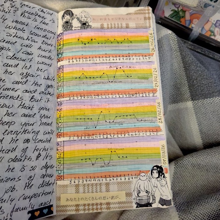 Filled up my mood tracker for a few days. I wanted to see if its even something I enjoy doing. But yea. I like.to see my mood progress throughout the day and.week. I'll be doing another one but still not every week.