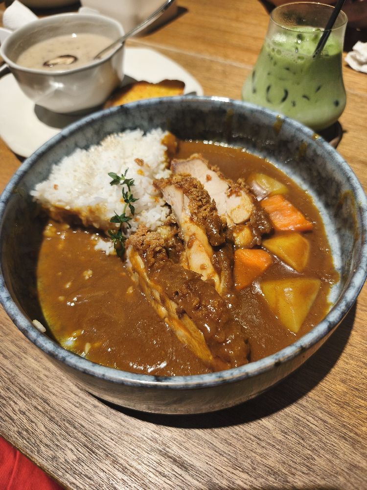 Japanese curry katsu rice so good with mushroom soup and matcha. surprisingly I managed to sleep w the dose of matcha 😛