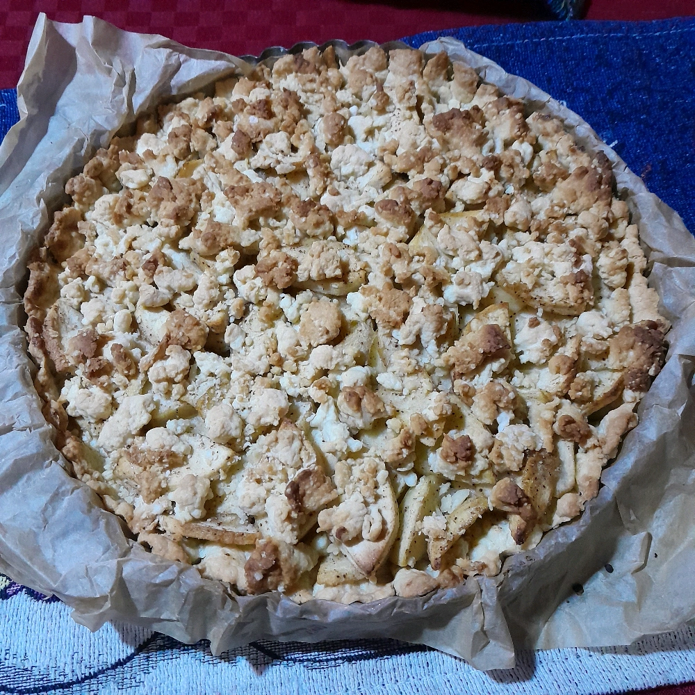 first attempt at making a crumble-apple pie :D the pic is lowq but it was yummy!! it's apple season so why nottttt