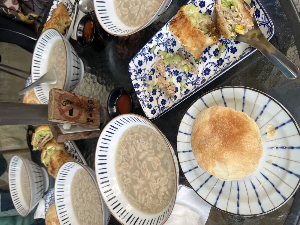 礁溪田野小徑旁的老宅早餐店 外皮酥脆的粉漿蛋餅(大概加了酥油吧吃了好罪惡 份量比一般早餐店的蛋餅整整大了一倍超有飽足感 蘿蔔糕外酥內嫩也很讚 飲料是碰餅花生仁湯超酷 客人超多結果只有一個煎台,出餐好慢
