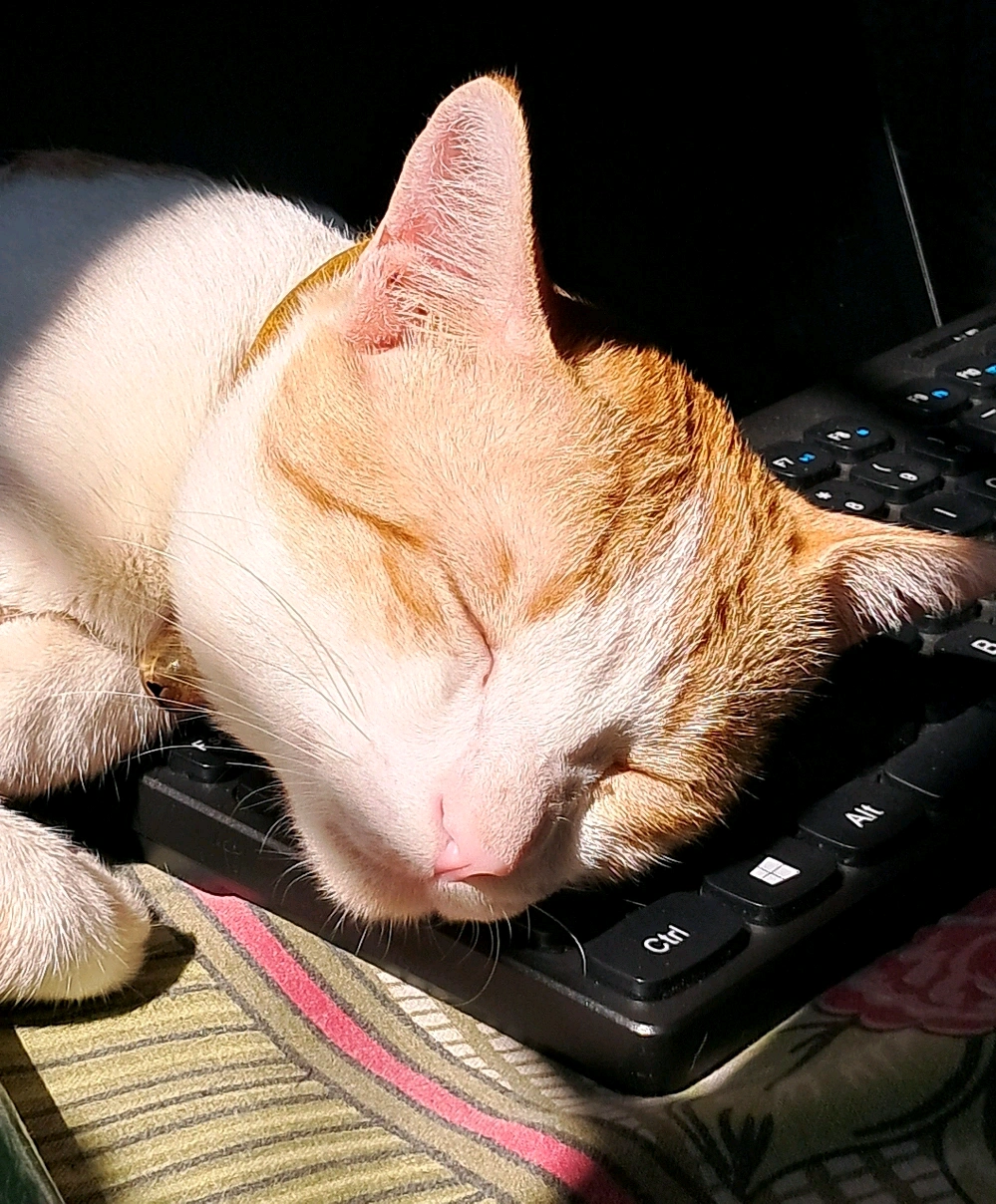 Here is my menacing cat. His favorite place to pee? My books given he has his own multiple litter box. MULTIPLE!!! YES. His favorite place to doze off? My books and my systems.
