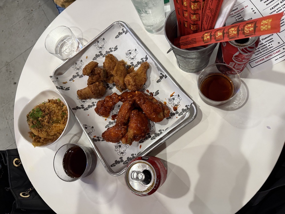 The soy garlic wings were my favorite! The gochujang sauce were good as well. I didn’t order soju but I was really tempted :)