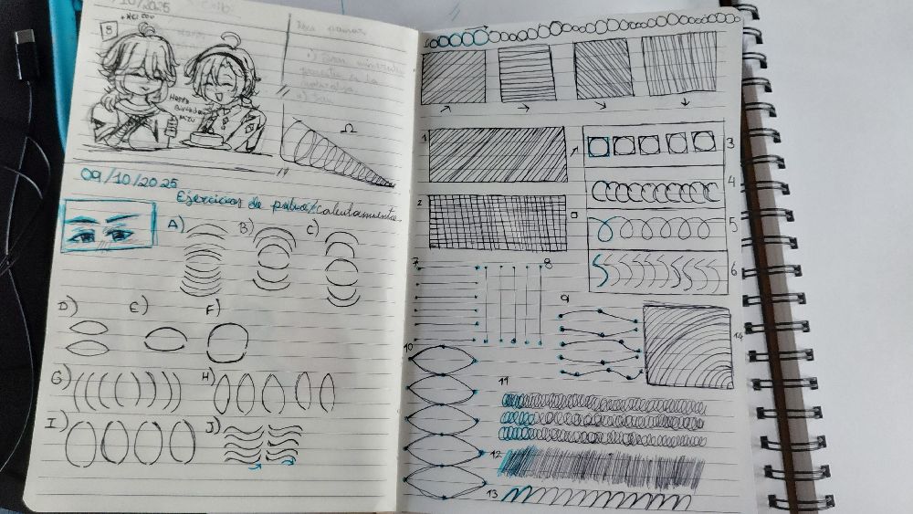Just a small re capitulation about my art work, and also homework. The last drawing I finished a few minutes ago, I like the final result, but my hand in hurting a abit right now, so I'll rest it a bit. The second picture was when I was finishing my homework, that I had to paint the lamp, the first module of the Stanley Cup, and two pieces of MDF. Lastly I made 2 doodles and a few practices to warm up my hand. They are quite old, at least one or two weeks old.
