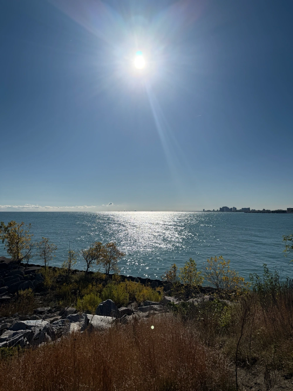 went out for a walk near the shore today with my fiance. There was so many grasshoppers and caterpillars (Got pictures of neither) the water was chill and the sky was beautiful.
