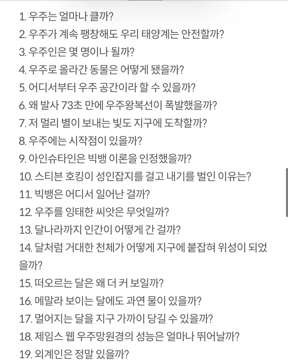 유튜브 ‘보다’ 채널 재밌게 본 경험이 있다면 강력 추천이요. 평소에 가볍게 관심갖던 주제들을 이해하기 쉽게 설명해줍니다. 그림 자료도 같이 있어서 더 이해가 잘 돼요. 사진은 목차 일부예요. 무슨 느낌인지 아시겠죠. 책이 너무 부담스러우면 유튜브 꼭 한 번 보시길 추천드립니다. 제 최애 채널이에요. 자기 전에 꼭 들으면서 잠. ㅋㅋㅋㅋㅋ 약간 알쓸신잡st 메인 주제를 중심으로 다양하게 궁금증을 해결해줍니다 유튜브로 보는 게 더 재밌는 건 맞지만 책이 더 주제에 딱 맞는 명확한 설명을 해줄 수 있다는 점이 좋은 것 같아요 - 인류를 살린 소금은 도대체 어디서 왔을까? https://youtu.be/tSiDE2nIPfw?si=wDXKOkDu-JAM0sM2