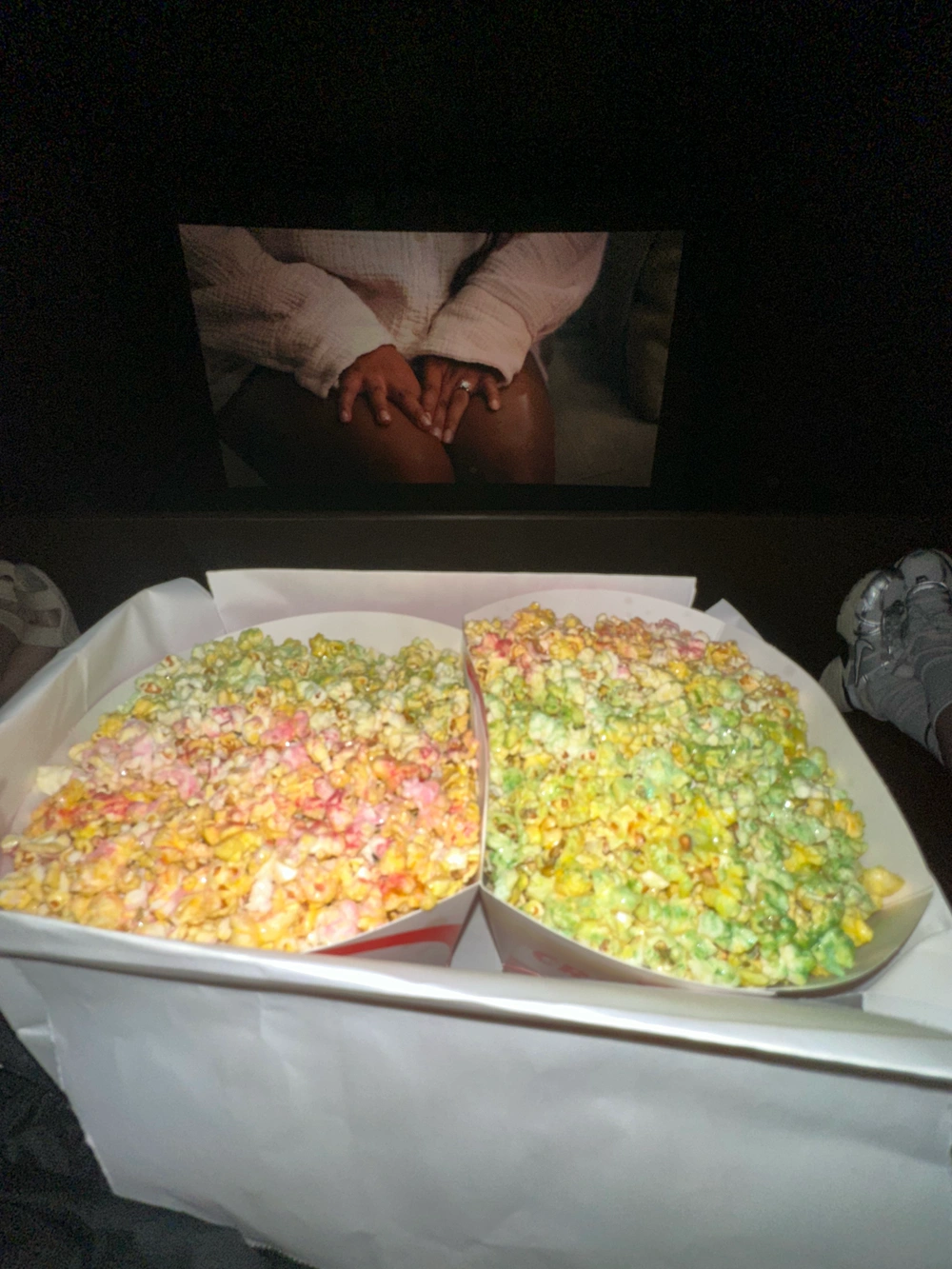 my second time watching it and the experience was something i’m definitely wishing on my enemies. i accidentally spent $24 on concessions that i barely made a dent in because i didn’t realize i had TWO kettle corns and they just so happened to be literal TUBS. i also got a small drink that was $5.70 because that’s what things just cost these days. it’s not even bad yet. i get to my seat and there’s a mom and daughter to my left. little girl that was def less than 10 because she was antsy as hell and threw literal tantrums. she kept asking and saying loud things during the trailers and i let it go because its trailers and she just needs to let it out before the movie. not even five minutes in and she’s already spoken out loud and we’re sitting in the literal middle of the entire theater. you would think that her mom would do something to enforce movie theater etiquette with her daughter, but nope. mom just lets her do this for truly half of the movie. to the point, i literally left the theater for a little bit because my experience was going to shit and somehow i was still sleepy and falling asleep. i walked to the car to grab my half finished large rebel drink from dutch bros and then to ikea to get hot dogs. imagine my face when i get there and the only thing they’re out of was hot dogs. and i wasn’t paying $7.50 for a cinemark hot dog. i just hit my penjamin multiple times before making my way back in to suffer. surprisingly, mom actually quieted her daughter this time and i got to cry during ‘for good’ again, for most of it, until daughter pipes back in and im unable to be in touch with my emotions again. bro i don’t even wanna think about it anymore highkey. ma’am, i don’t think a dark theater is the best place for your less than 7 year old at 2:30 pm on a tuesday for two hours when she was literally kicking the seat with her energy. i can’t.