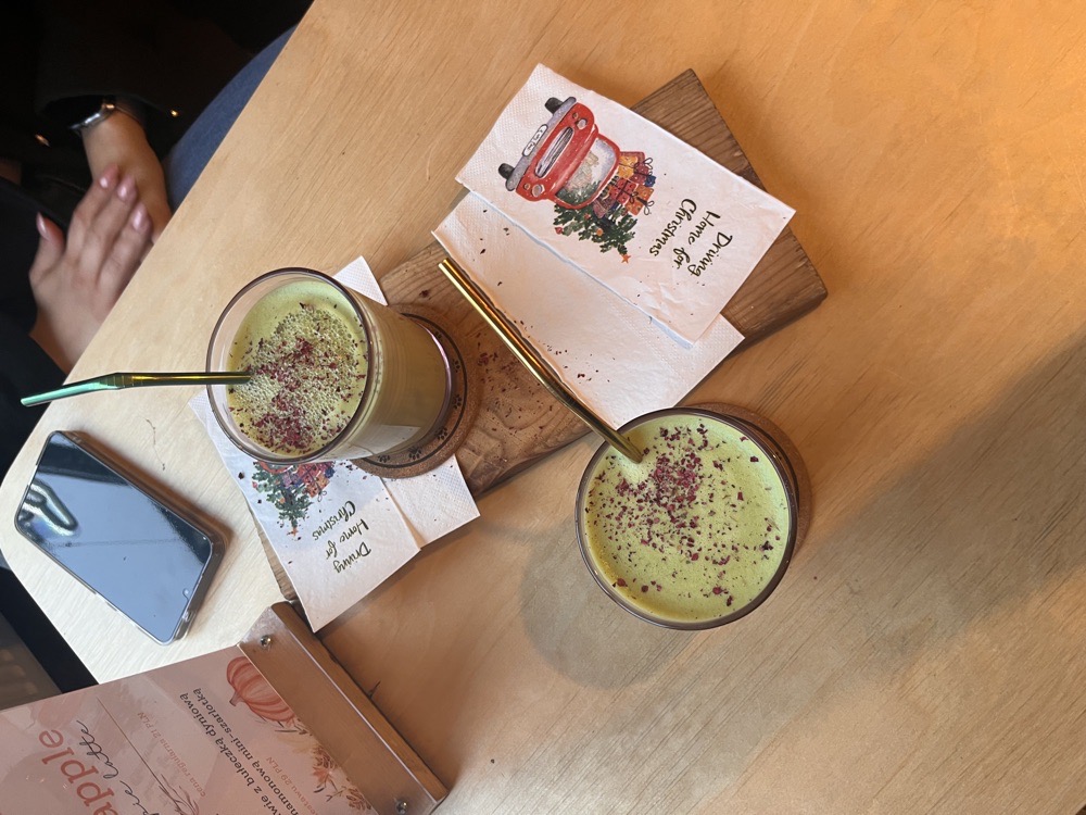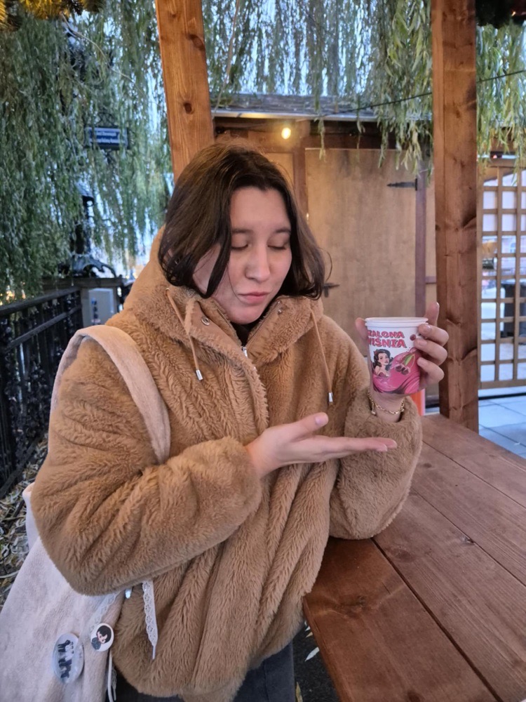 🎆It was nice day, I had a meeting with my bestie today. Weather was terrible unfortunately cause it was cold and rainy and it made whole city a one big ice rink. I believe I saw like 5 people falling on a ground, and because of that I have realised I have to clear the snow from the yard for my granny to make her walking around safer because damn… it’s too dangerous with this weather and it won’t be better. 🎆 Besides terrible weather it was funny day, I’ve drunk mulled wine and maple syrup matcha ( not in this order but still this two options in one sentence is wild in my mind) I walk around with bestie taking silly pictures and jesting around.