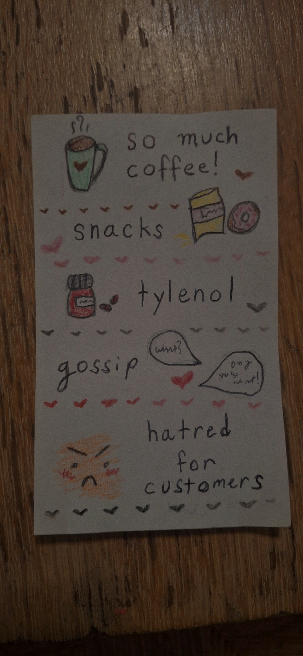doodled a little caricature of myself at work and what I need to get through the day! I'm not very good at drawing, but I like being creative however I can!