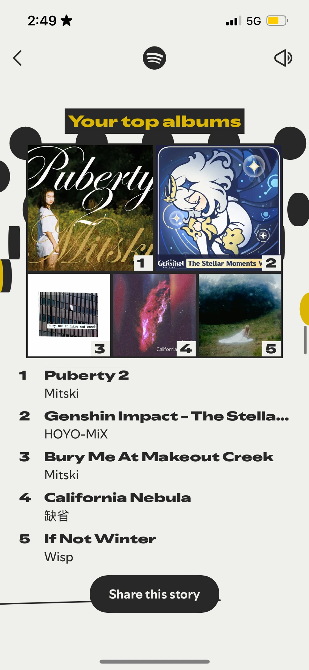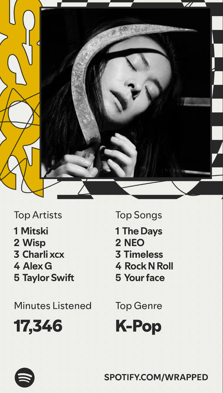 sigh ever since loosing my airpods the amt i listen to music dropped yay mitski is still here tho love her def like the new wrapped a bit better