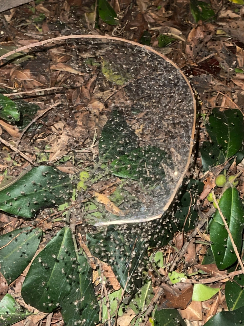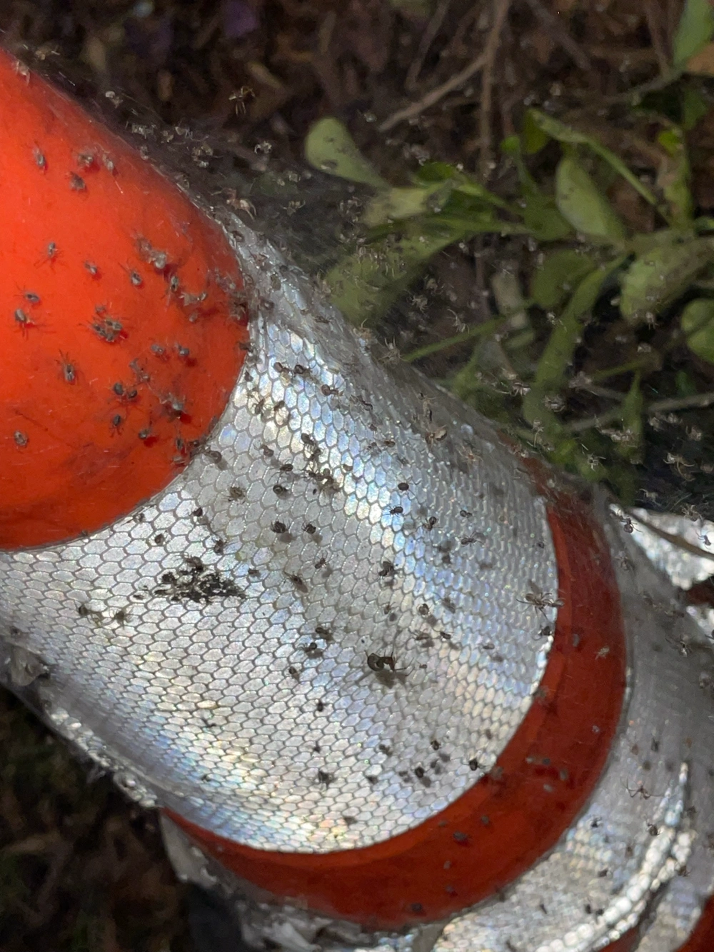 just baby spiders taking over the grass area where my dog poops. gave me literal goosebumps. the tiny dots are baby spiders.
