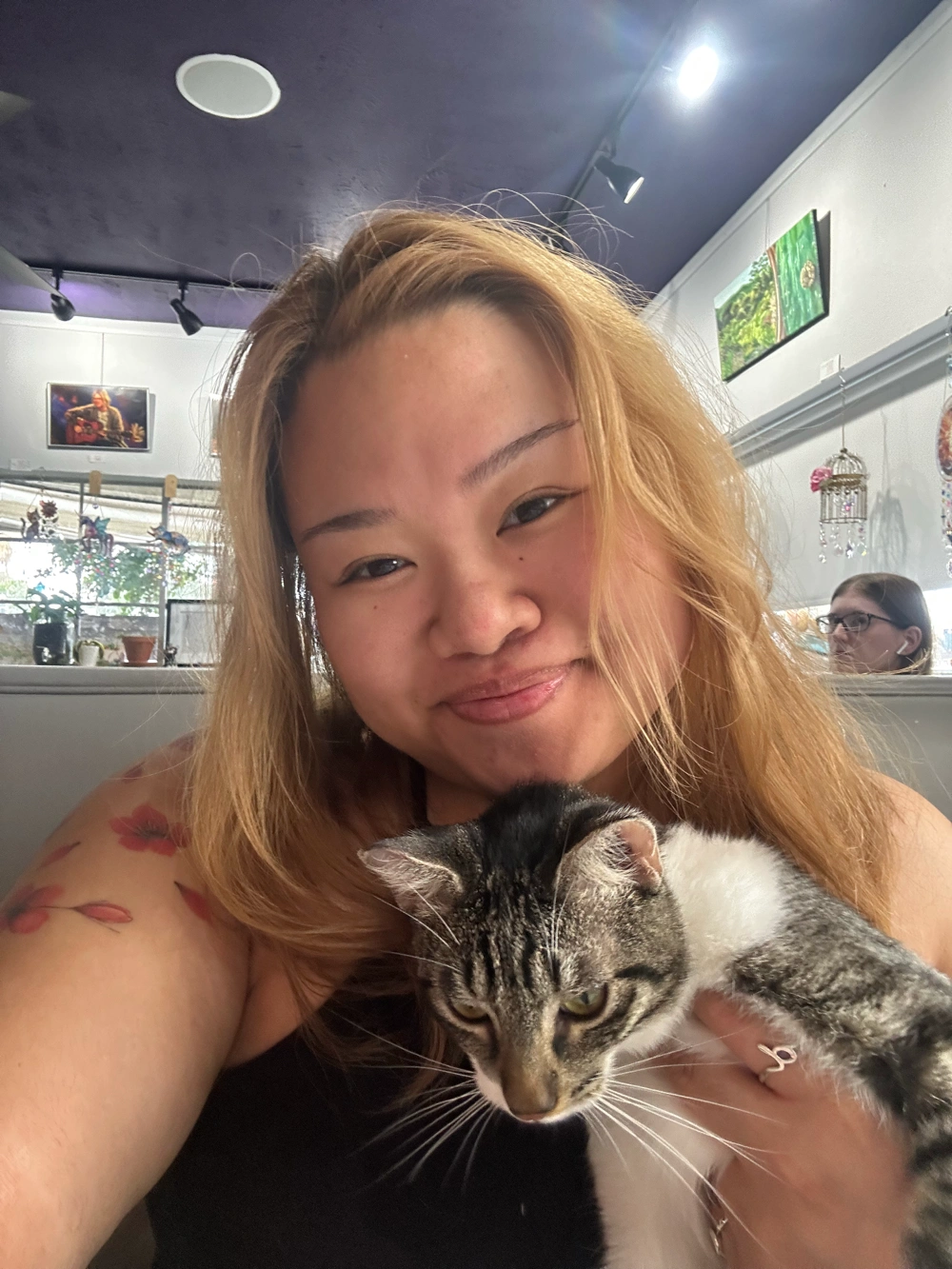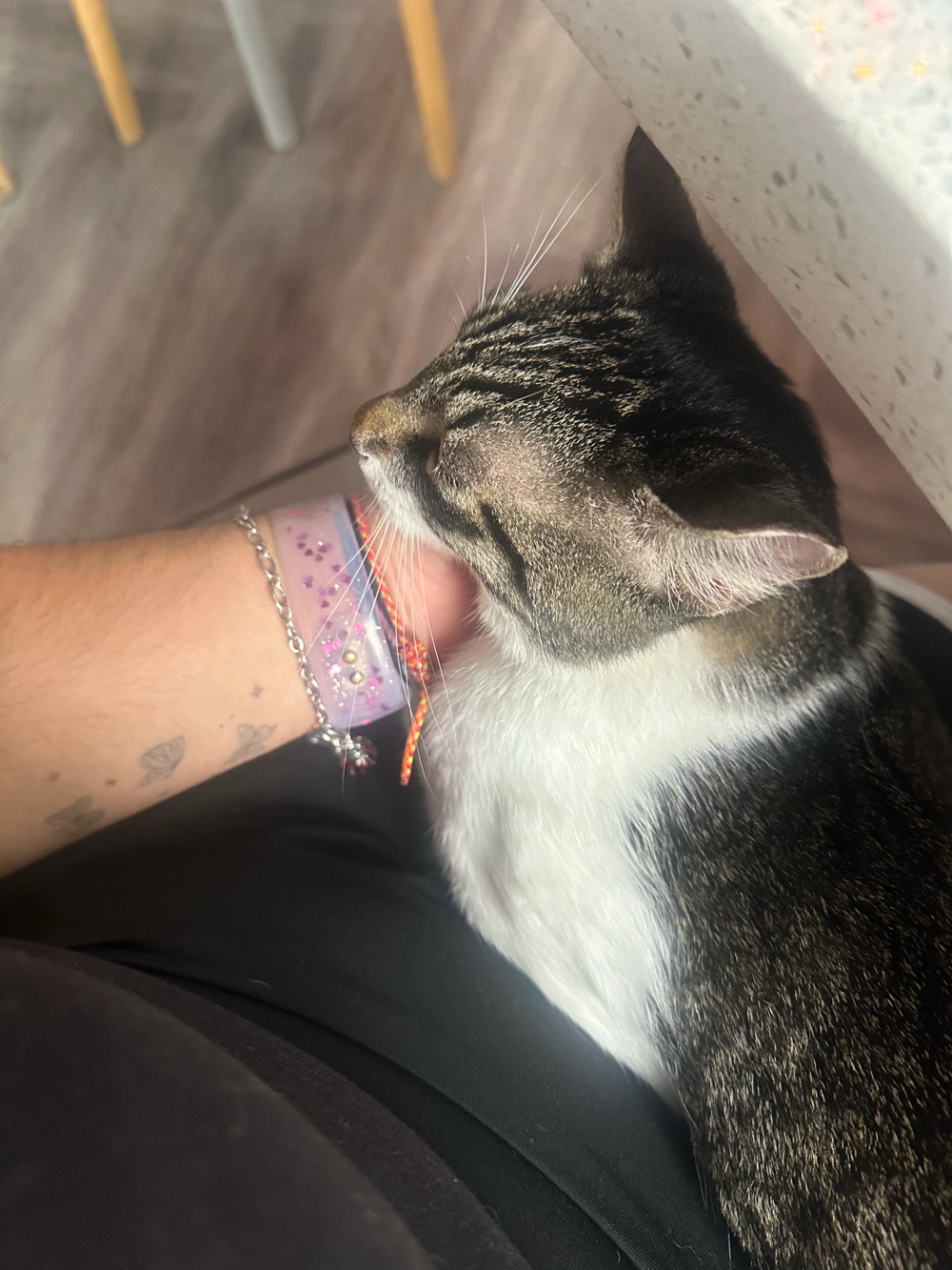 accidentally went to a cat cafe on my last full day in mcallen. i didn’t even get pics of the other kitties, but there was another was more plump than this one and it was a tortoiseshell kitty !! and then we had an orange with some conspicuous balls and i unfortunately can’t not tell you that. i’m sure there were more, but i only came across three on my visit.