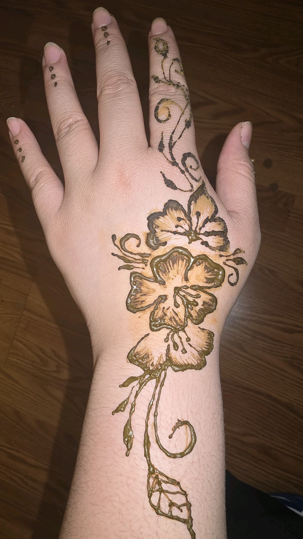 I did it again. Doing this made me realize I had never done a design on my hand because it was actually uncomfortable to do. It came out pretty good though. I'll update when it stains.