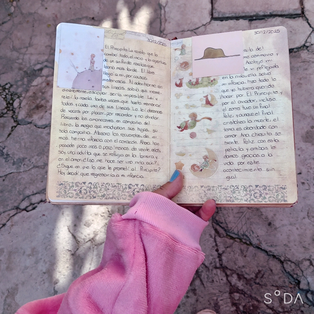 Ayer regresé a mi infancia, regresé al libro del Principito ya, como una adulta consumada. Volví al libro por medio de la película, me encantó, creo que la protagonista honró todas esas promesas que le hice El Principito y al aviador cuando era niña. Esa película se sintió como un apapacho al corazón y aproveché para escribir unas páginas de mi journal.