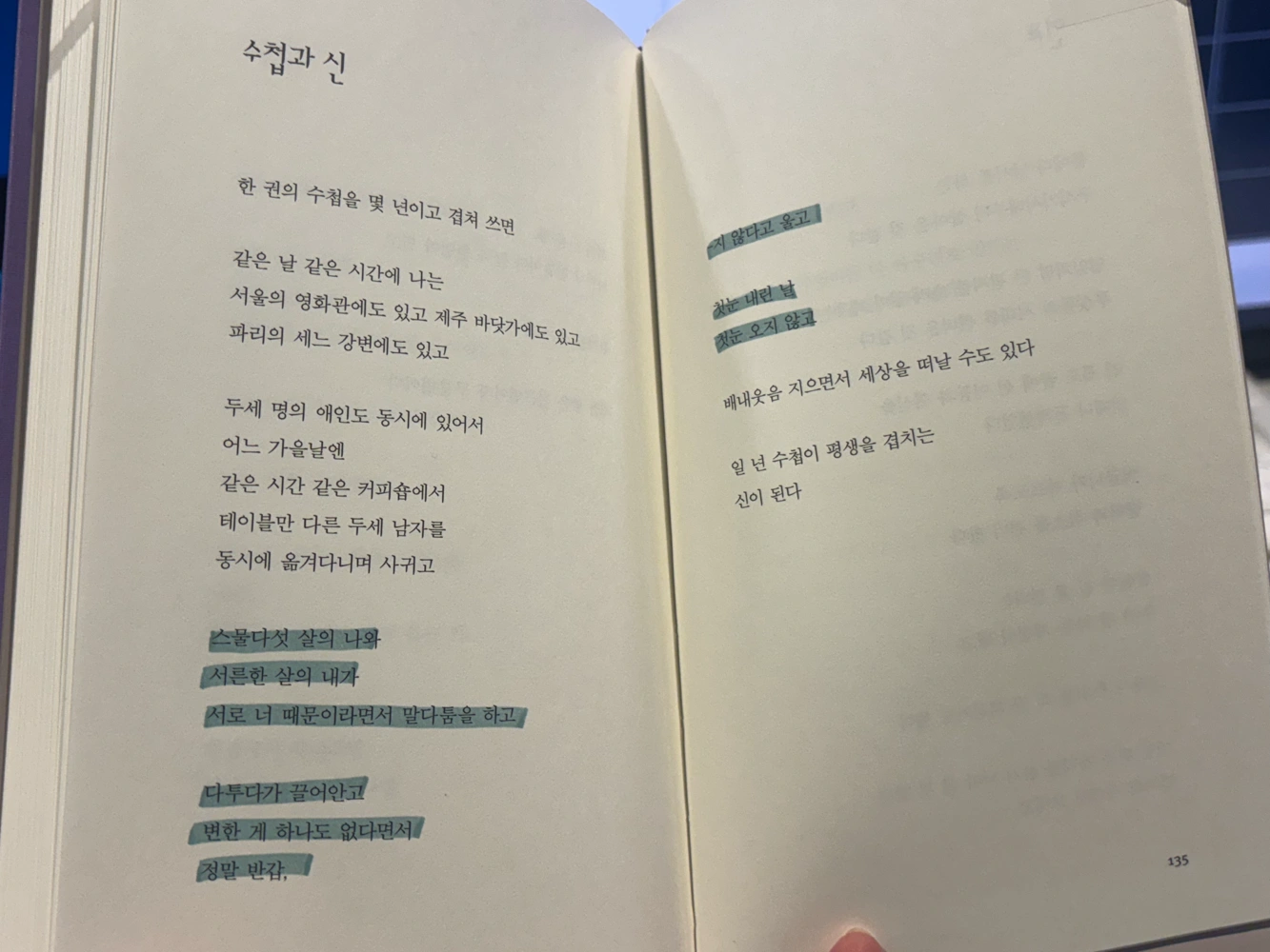 정말 오랜만에 내가 좋아하는 시집을 만난 기분... 자주 돌려볼 것 같다 !! 그리움보다는 떠나고싶을 때 ... 읽기 좋은 시집
