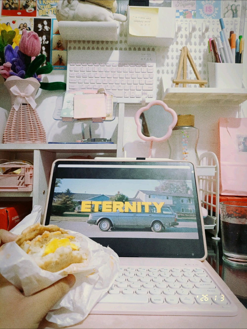 currently watching eternity (2025) with my double chicken burger with egg & supreme cheese 😋