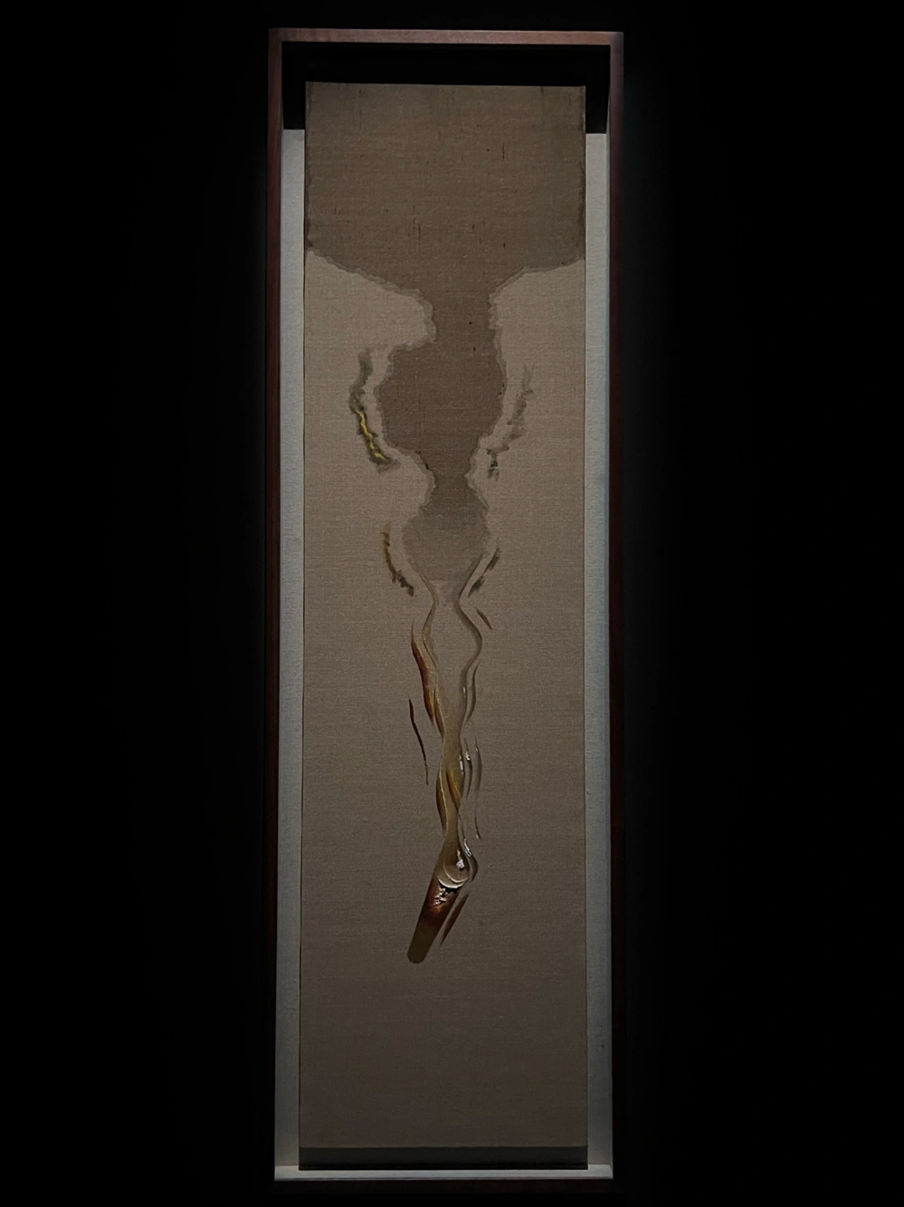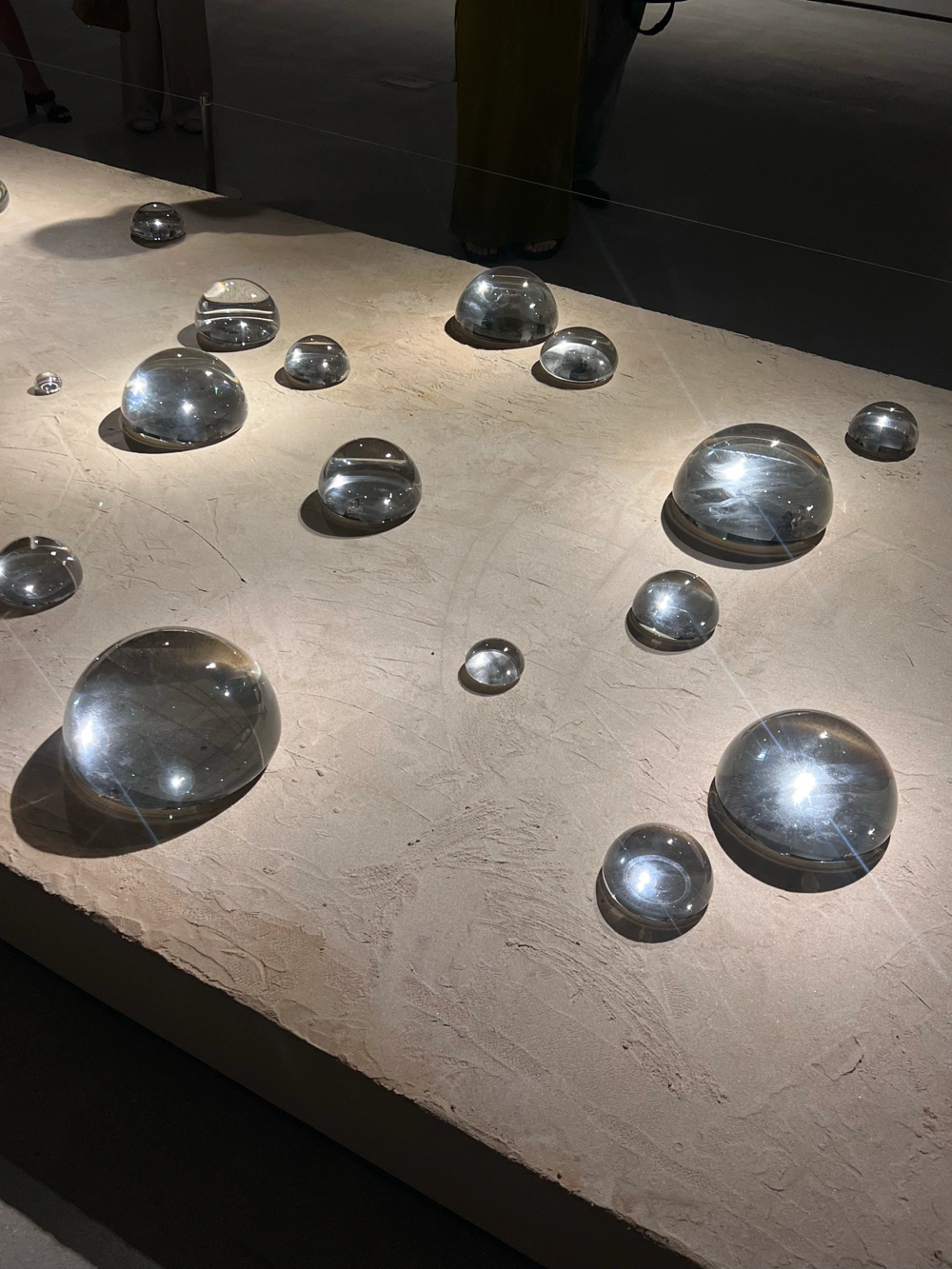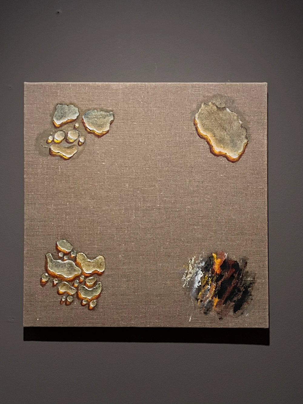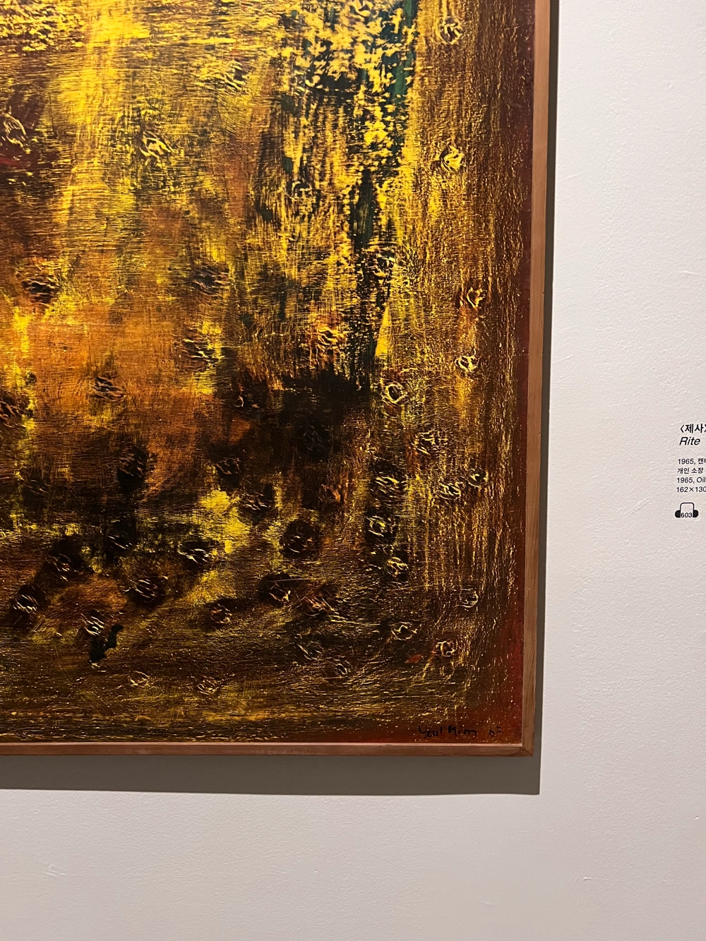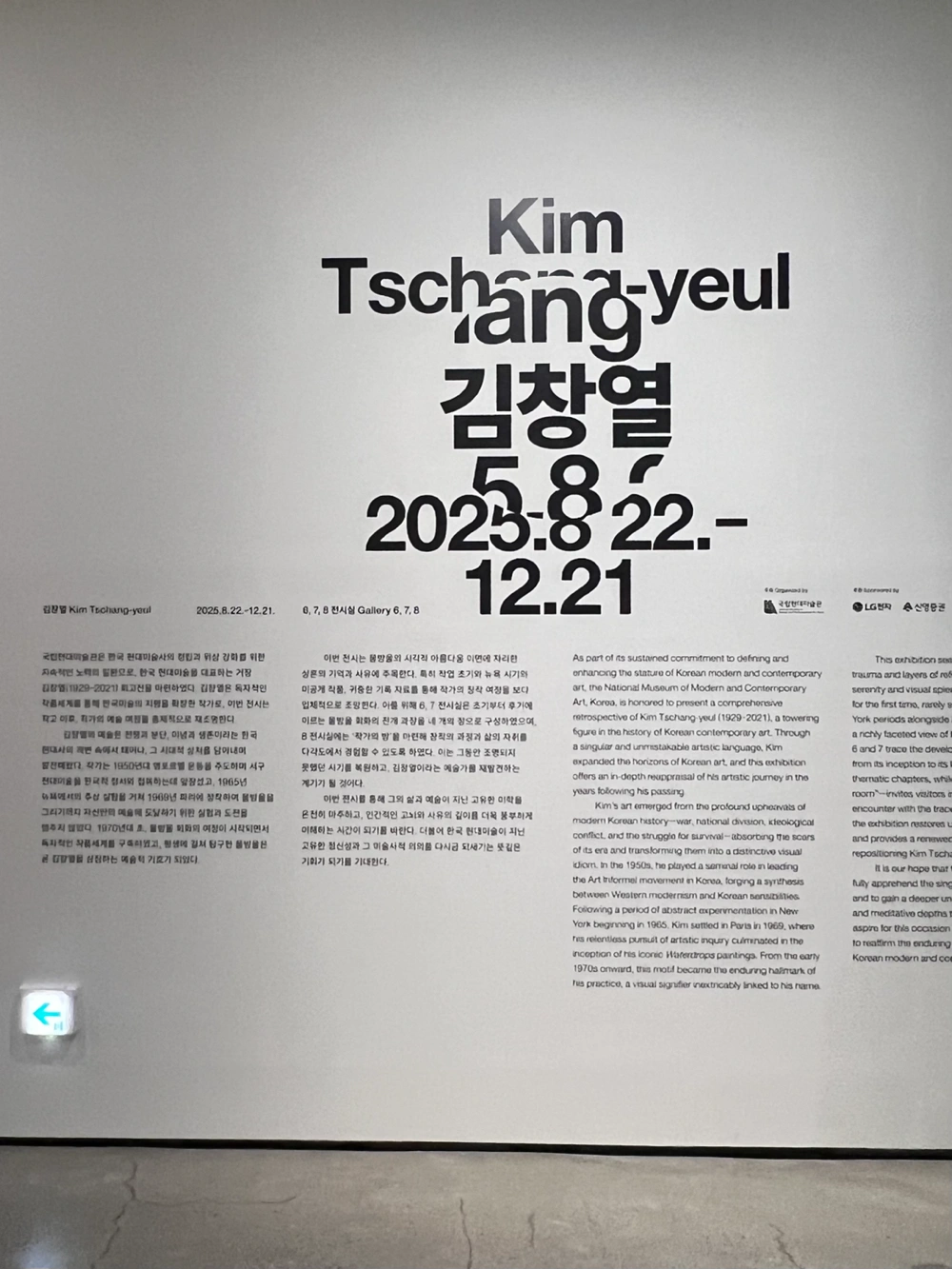 그에게 물방울은 단순한 회화적 모티브가 아니라, 고통을 승화하고 치열한 삶 속에서 자신의 정체성을 찾기 위한 몸부림처럼 느껴졌다. 수많은 물방울 하나하나가 붓질로 표현된 그림이라는 사실이 놀라웠고, 형태와 맺힌 위치가 저마다 다른 점이 인상적이었다. 전쟁에서 겪은 상처, 총알 모양의 상흔을 물방울로 연결해 표현한 방식이 마음을 울렸다. 흘러내리는 물방울은 마치 눈물처럼 보였다. 그중에서도 마지막에 사진의 불에 탄 물방울 그림이 가장 기억에 남는다. 김창열 작가에 대해 잘 알지 못한 상태로 전시를 보았는데, 이번 전시는 그의 작품 세계를 시간순으로 따라갈 수 있도록 구성되어 있어서 작가의 생애 흐름과 함께 작품을 이해할 수 있었다. 물방울이 어떻게 시작되었고, 어떻게 변해왔는지를 보며 김창열이라는 사람을 아주 조금은 알게 된 듯하다. “물방울 연작은 내가 태어난 원천으로 돌아가야 한다는 깨달음에서 시작되었다. 사물을 그것들이 속한 자연의 장소에 내버려 둘 것, 사물들이 충만한 가운데 각자의 삶을 살게 할 것. 그에 따라 요구되는 것은 최소한의 동작, 최소한의 행위다. 물방울, 그것은 내 삶의 어느 교차로에서 이루어진 내 [외적] 경험과 외부의 만남이다. 물방울에 자연의 한 장소를 내주기 위한 미가공 상태의 마포.” “무위, 사물들이 각자 충만한 가운데 각자의 삶을 살게 내버려두기. 물방울에 자연의 한 장소를 내주기 위해 미가공 상태의 마포, 모래, 흙, 나무 등의 질료가 바탕 매체로 선택되었다. 물방울은 개념 같은 것이고 실체가 아니다. 물방울의 물리적인 외양만을 봐선 안 된다. [물방울의] 반복은 명상과 같은 것, 정신을 전의식의 기슭으로 데려다주는 행위로 여겨졌다. 김창열 1975년 11월“