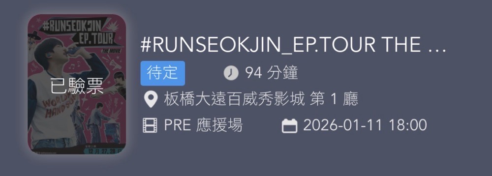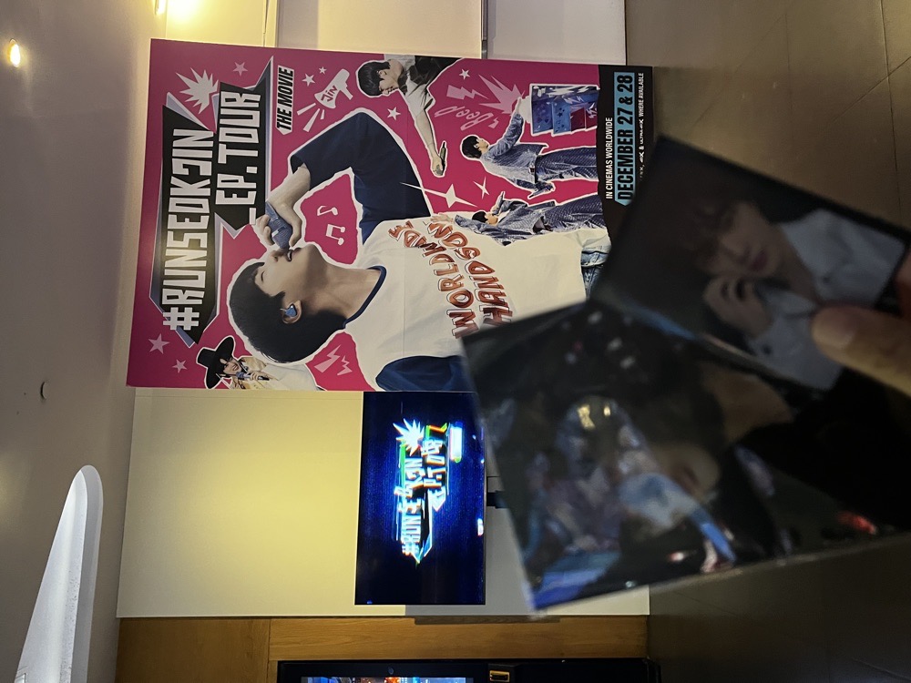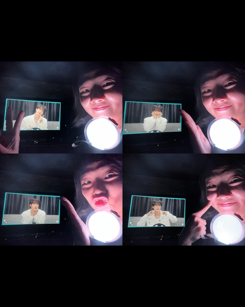 真的要跟超級鮪魚說再見了😖 雖然人不多但這是唯一場有手燈的吧 但因為數量太少,燈顯得非常亮 最後一次能在電影院唱超級鮪魚了 還會有下次嗎~感覺不大可能~😫 終於完成了我跟阿珍的合照 終極手段哈哈哈哈哈哈 他獨自帥就行😎 這次挑了最後一排都沒人 我想幹嘛就幹嘛好開心喔🥴 小插曲: 2種小卡,我拿到的比例是A/B:1/2 原本這次拿到會變1/3 剛好有人也想換小卡就變成2/2 真是太開心了✨✨