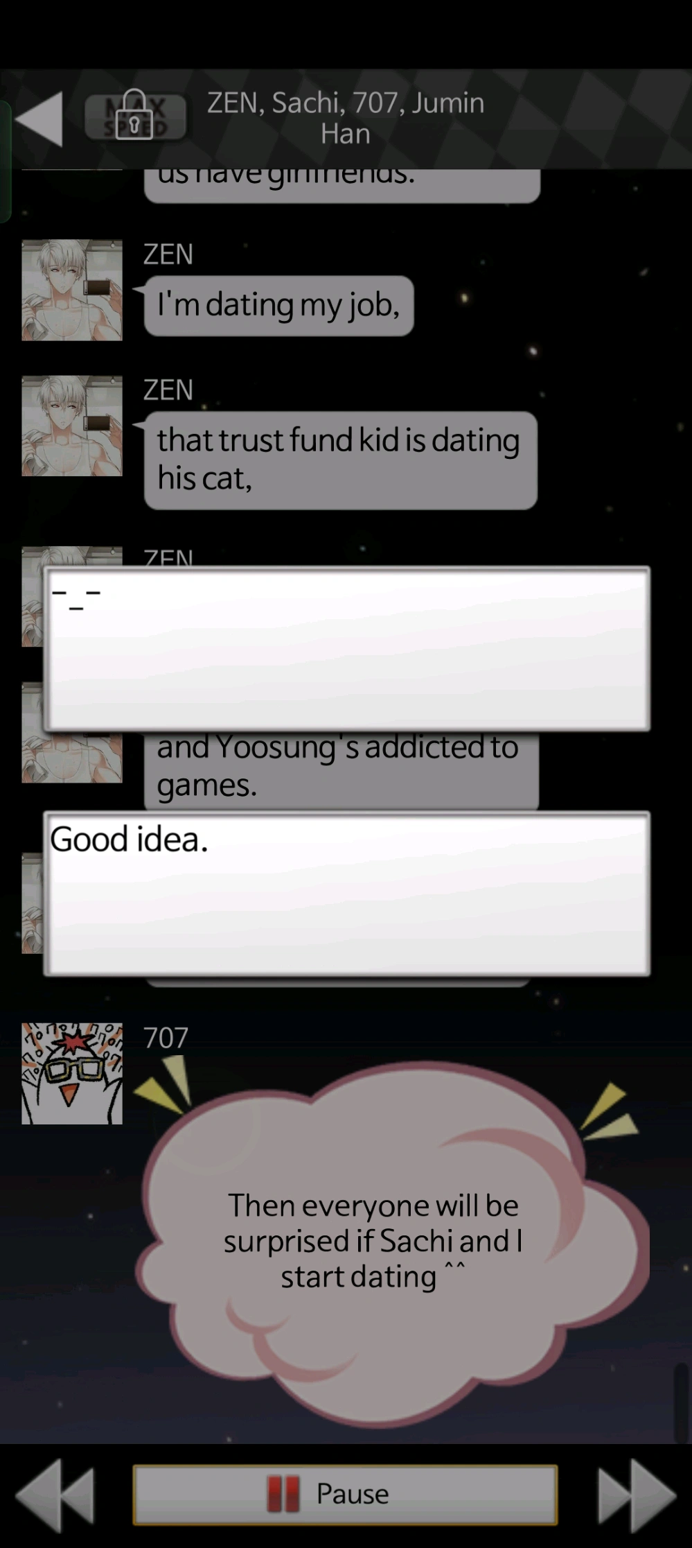 I'm so sorry Seven ಥ╭╮ಥ but I'm taking Zen's route let's met each other in deep story (っ˘̩╭╮˘̩)っ