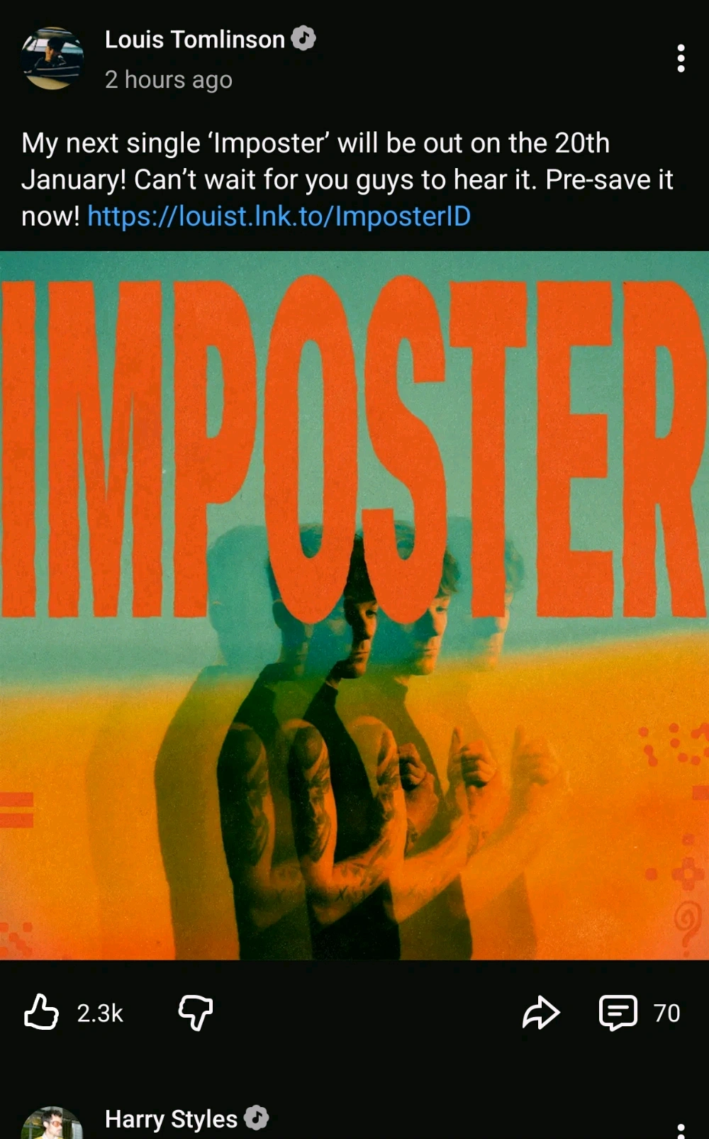 WTFFF REALLY?? LOUIS with his 3rd album after 3 years HARRY with his 4th one after 4 freaking years NIALL won the voice & ZAYN is starting his residency at the sphere and new world tour maybe this is the yearโค๏ธ๐๐ฎ๐ช๐๐
